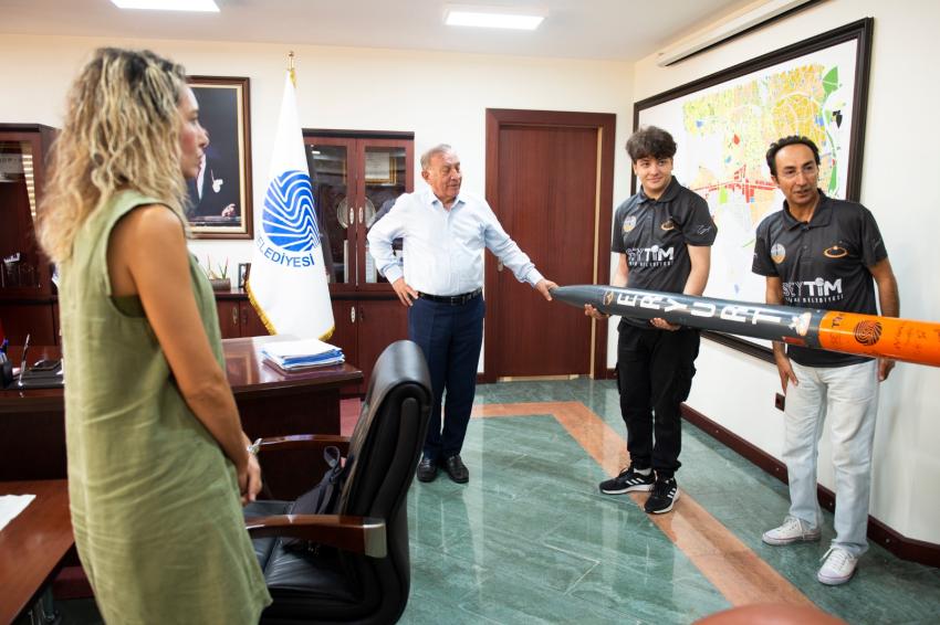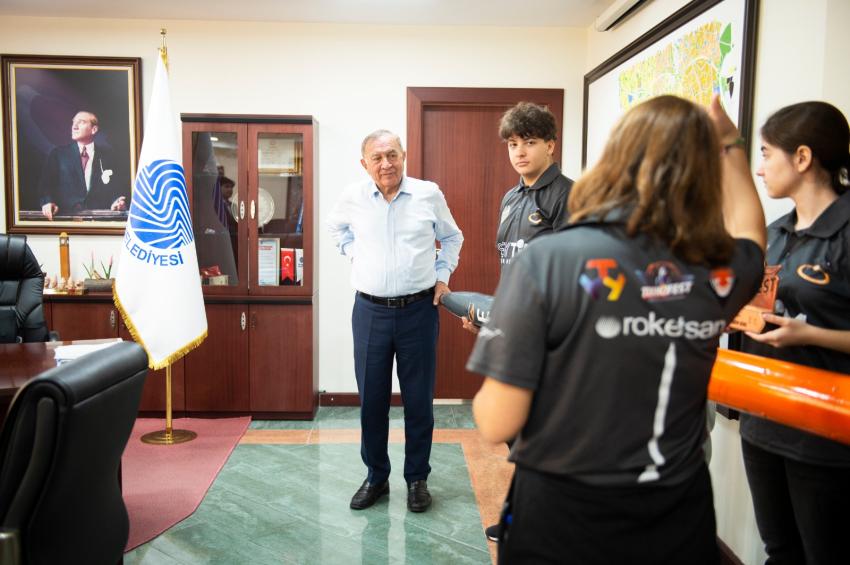Seyhan Belediye Başkanı Akif Kemal Akay’ı makamında ziyaret eden roket takımı, desteklerinden dolayı Seyhan Belediyesi’ne ve Başkan Akay’a teşekkür etti. Başkan Akay dereceye giren roketin üzerine imzasını atarken, gençlerin Türkiye’nin bugünü ve yarını olduğunu söyledi.