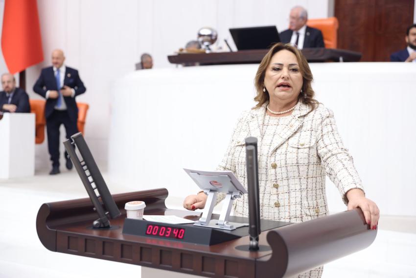 Meclis kürsüsünde 10 saniyelik suskunluk eyleminden sonra konuşmasına başlayan CHP Adana Milletvekili, TBMM Başkanlık Divanı Üyesi Dr. Müzeyyen Şevkin, AKP milletvekillerini kızdırdı.