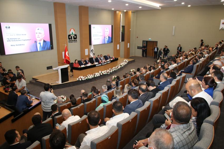 Bakan Bolat, ev sahipliği için ATO Yönetim Kurulu Başkanı Yücel Bayram ve yönetimine teşekkür ederek, “Gerçekten burada iftihar ettim. Adana Ticaret Odamızın bu güzel tesisi hayırlı, uğurlu olsun. İş hayatında 41 yıl geçirmiş ve reel sektörde görev yapmış bir kardeşiniz olarak söylüyorum, Türkiye’mizin nereden nereye geldiğinin bence en güzel örneklerinden biri de bu güzel hizmet binasıdır.