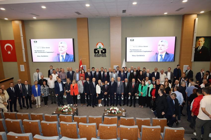 Ticaret Bakanı Ömer Bolat, Adana programları kapsamında Adana Ticaret Odası'nı ziyaret ederek, ATO'nun ev sahipliğinde iş dünyası ve sivil toplum kuruluşu temsilcileriyle bir araya geldi.