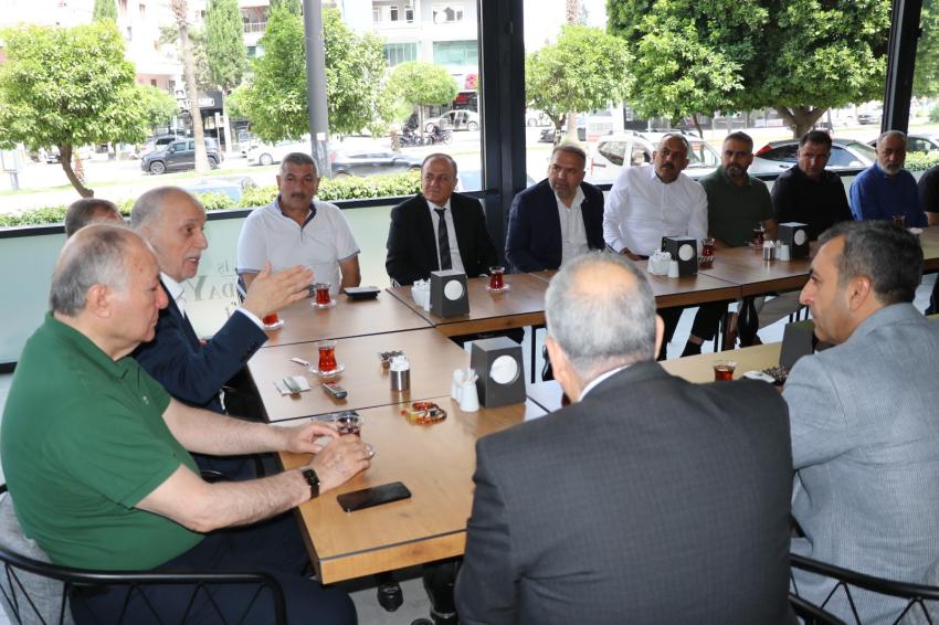 Bir dizi temaslarda bulunmak üzere Adana’ya gelen Türk-İş Genel Başkanı Ergün Atalay, Türk-İş’e bağlı Türkiye Yol-İş Sendikası bünyesinde bulunan Holiday Otel’de Türk-İş’e bağlı Sendika Başkanlarıyla bir araya geldi.