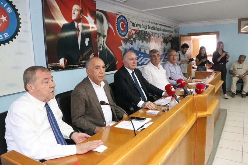 Konfederasyonunun, üyelerinin ve geniş kitlelerinin karşı karşıya kaldığı güncel ekonomik sorunlara yönelik eylem planını açıklamak üzere Adana’ya gelen Türk-İş Genel Başkan Yardımcısı Ramazan Ağar, Türk-İş 4. BölgeBaşkanı Edip Gülnar ve bölge illerden 70’e yakın sendika başkanı ile temsilcisinin katılımıyla bir basın toplantısı düzenledi. Ağar, üyeleri başta olmak üzere tüm emekçilerin taleplerini dile getirdiklerine vurgu yaparken, “Emeğimizin karşılığı olan gelirimizin enflasyon verilerine kurban edilmesine karşı açık bir tavır alıyoruz” diye konuştu.