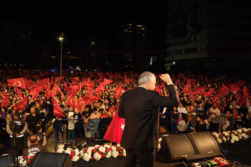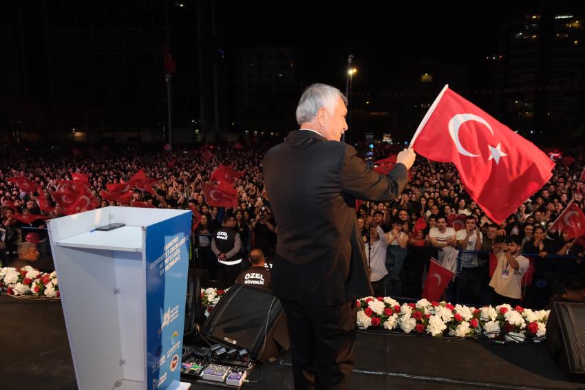 Başkan Zeydan Karalar konuşmasını şöyle sonlandırdı: “Cumhuriyetimizin, Ulu Önderimiz Mustafa Kemal Atatürk’ün önemini, kıymetini bilelim. Bugün burada, Uğur Mumcu meydanında toplanan on binlerce Adanalı, Cumhuriyetle ilgili kararlı duruşunuzu gösteriyor. Geçen yıl söylediğimi tekrar ediyorum. Ulu Önderimiz rahat uyu, Cumhuriyet emin ellerde, işte Adana burada, işte gençler burada.”