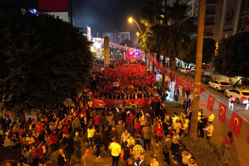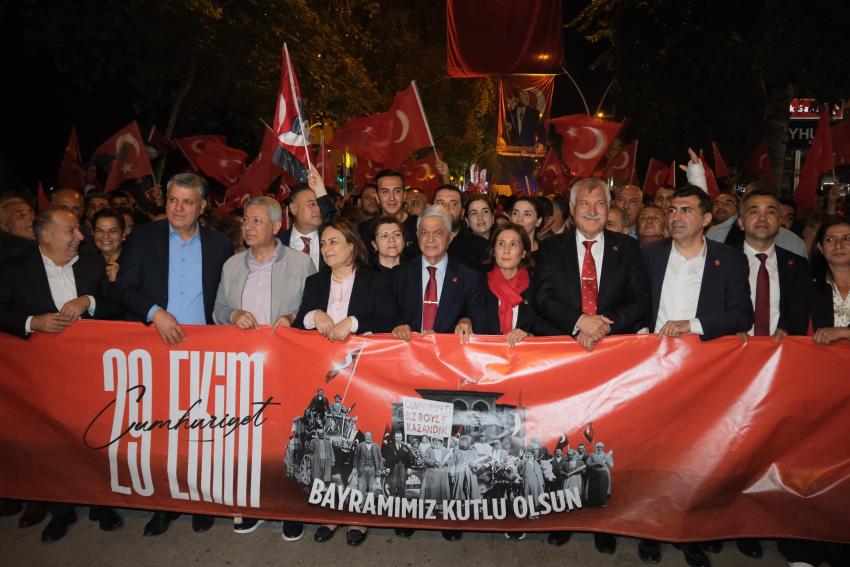 Adana Büyükşehir Belediyesi ile CHP’li ilçe belediyelerinin düzenlediği 29 Ekim Cumhuriyet Bayramı kutlamaları, Adana Büyükşehir Belediyesi önünde başladı. Adana Büyükşehir Belediyesi önünden yürümeye başlayan ve Büyükşehir Belediye Bandosu’nun eşlik ettiği coşkulu kalabalık, Cumhuriyete ve Mustafa Kemal Atatürk’e bağlılık sloganları attı.