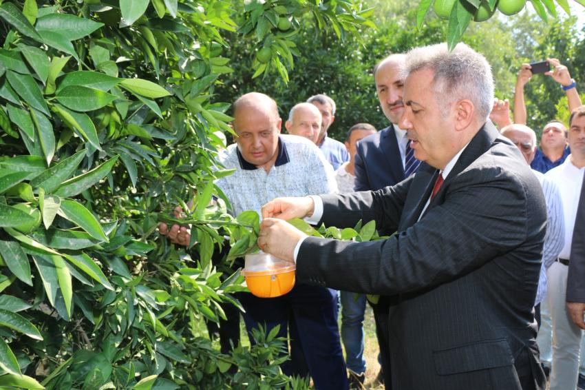 Konuşmaların ardından üreticilere tuzak dağıtımı yapıldı. Adana Valisi Dr. Süleyman Elban, Tarım ve Orman Bakanlığı Gıda ve Kontrol Genel Müdür Yardımcısı Dr. Yunus Bayram il müdürlüğü kampüsü içindeki turunçgil bahçesinde ağaçlara sembolik olarak tuzak astı.