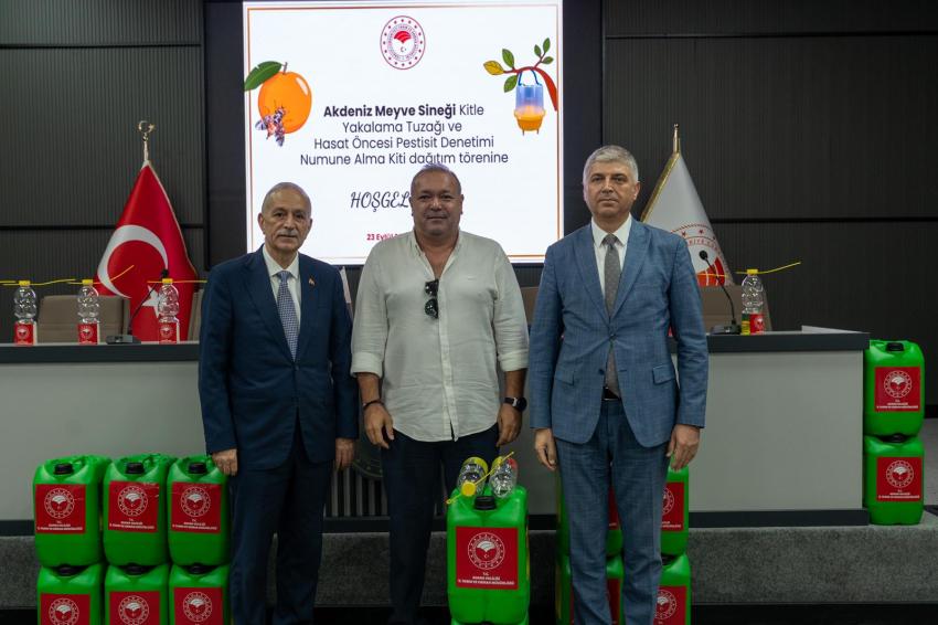 “Akdeniz Meyve Sineği İzleme Projesi” kapsamında 12 ilçede 125 adet bahçede 250 istasyonda yıl boyu sinek popülasyonunu takip ettiklerini kaydeden Bayazıt, “Buralarda haftada iki kez olmak üzere ayda toplam 2.000 sayım yapılıp kayıt altına alınmaktadır. Asılan tuzak sayım sonuç cetvelleri de Bakanlığımızla ve Adana Biyolojik Mücadele Araştırma Enstitüsü Müdürlüğümüz ile paylaşılmaktadır. Bugün burada dağıtımını yaptığımız 17 bin 580 adet kitle yalakama tuzağı ile üretim alanlarımızda biyoteknik mücadele yapılmasını teşvik edecek, kalıntısız üretime giden yolda bir adım daha atmış olacağız.” şeklinde konuştu.