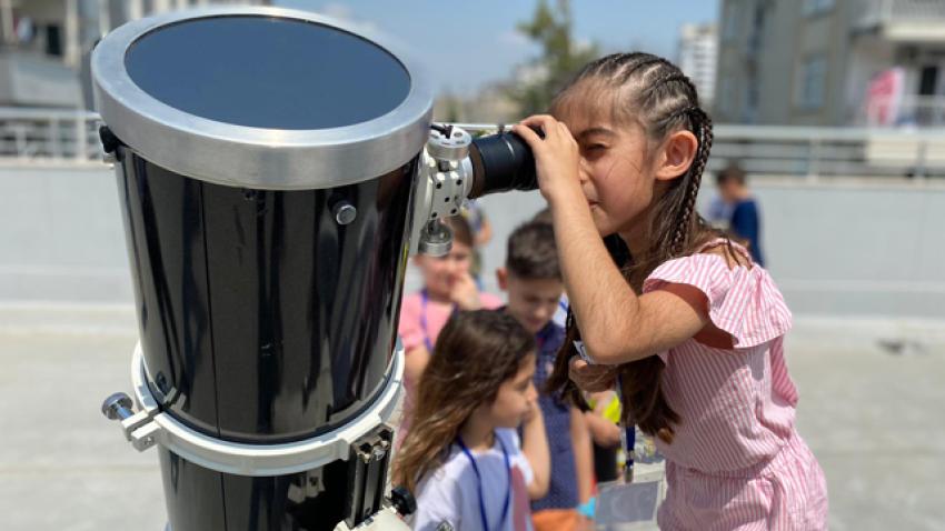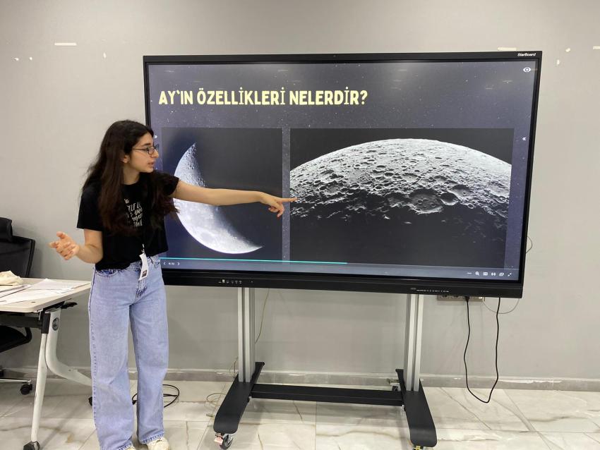 “Uydumuz Ay: Kraterler, Döngüler ve Hareketler” atölyesinde Dünya’nın uydusu Ay'a dair en çok karıştırılan kavramlar, Ay'a dair genel bilgiler ve az bilinen ilginç bilgileri içeren bir eğitim alan katılımcı gençler, eğitimin ardından güneş filtreli teleskop ile güneş gözlemi yaparak unutulmaz bir deneyim yaşadılar.