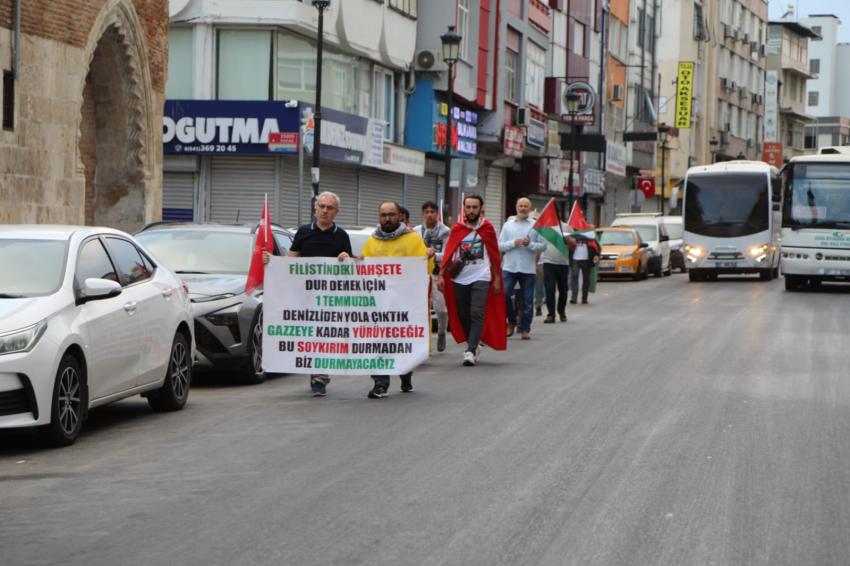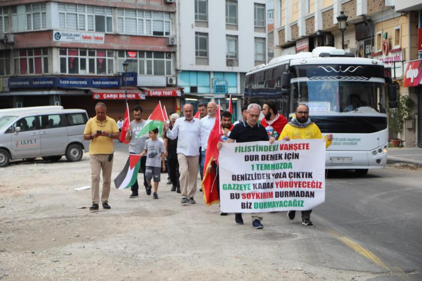 Çatal, "İsrail işgal güçlerinin Gazze'de uyguladığı zulümler, çocukların ve masum sivillerin hayatını karartmaktadır. Bu yürüyüşle Gazze'de ve diğer coğrafyalarda yaşanan insanlık dramını tüm dünyaya duyurmak ve bu zulümlere son verilmesi için harekete geçilmesini sağlamak amacındayız" şeklinde konuştu.