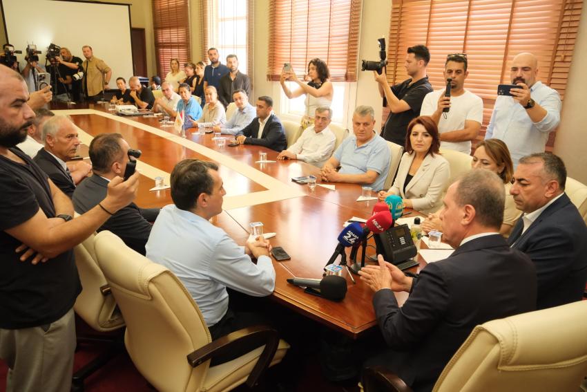Türkiye Belediyeler Birliği Başkan Vekili ve Mersin Büyükşehir Belediye Başkanı Vahap Seçer, tutuklanarak Silivri’ye gönderilen ve görevden uzaklaştırılan Başkan Zeydan Karalar’a ve görevden alınan diğer ilçe belediye başkanlarına destek için Adana Büyükşehir Belediye Başkan Vekili Güngör Geçer’i ziyaret etti.