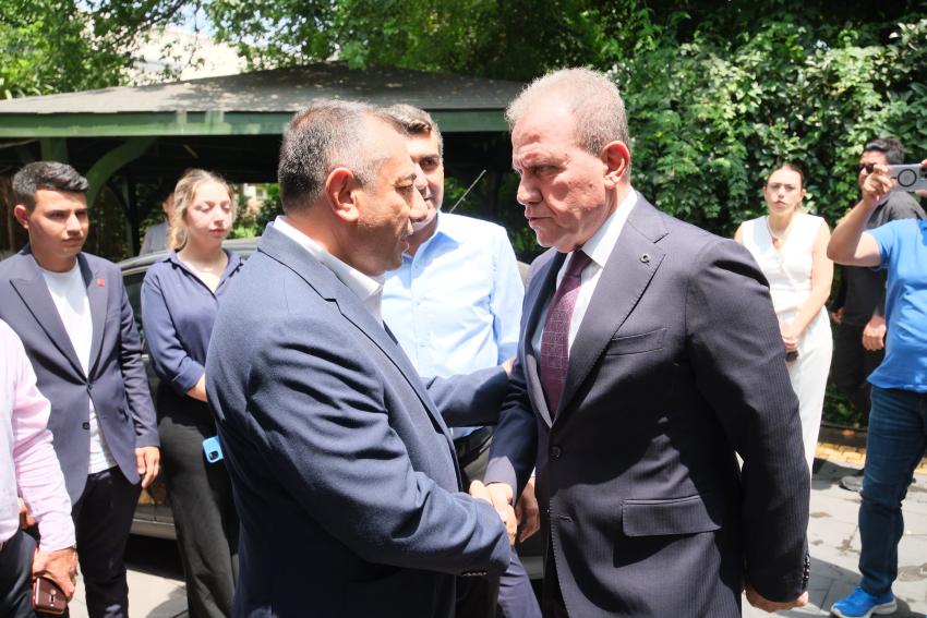 CHP’li belediyelere yönelik tutuklama ve görevden uzaklaştırmalarla ilgili daha önce destek amacıyla Antalya Büyükşehir Belediyesi’ni ziyaret eden Türkiye Belediyeler Birliği (TBB) Başkan Vekili ve Mersin Büyükşehir Belediye Başkanı Vahap Seçer, Adana Büyükşehir Belediye Başkan Vekili Güngör Geçer'i makamında ziyaret etti.