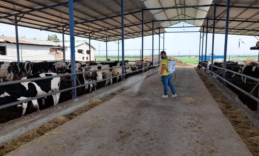 Yüreğir Belediyesi Kırsal Hizmetler Müdürlüğü ekipleri, hizmet sahasındaki köylerde tarımsal yapının zenginliğini arttırmak ve hayvan yetiştiriciliği yapan üreticilerin karşılaşmış olduğu hayvan hastalıklardan kaynaklı kayıpları en aza indirmek hedefiyle ahır ve ağılları sinek, haşere, hamam böceği, mavi dil, kene ve kemirgene karşı ilaçlıyor.