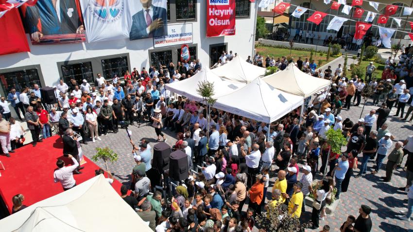 Çok amaçlı olarak bölge sakinlerine hizmet verecek Solaklı Mahalle Merkezi’nin açılışına Başkan Zeydan Karalar’ın yanı sıra; ilçe belediye başkanları, siyasiler, belediye meclis üyeleri, bürokratlar, muhtarlar ve Solaklı halkı katıldı.