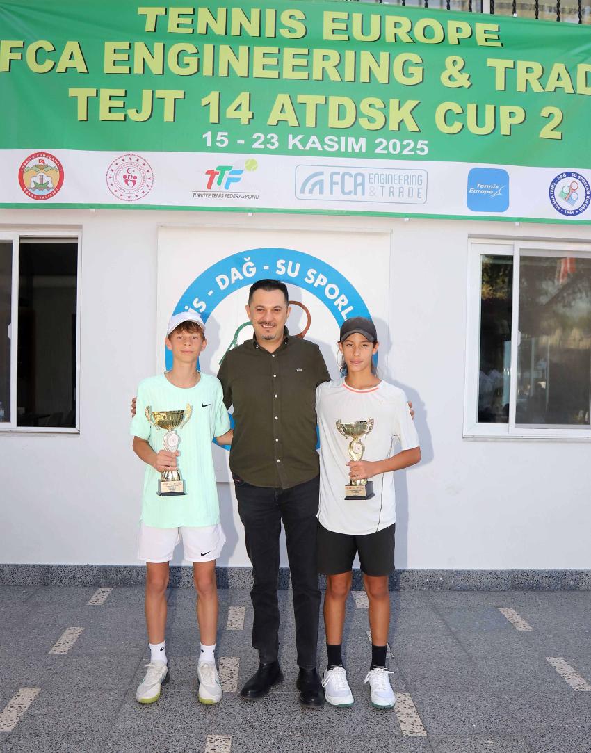 50 ülkenin üye olduğu Tennis Europe’un turnuva takviminde yer alan Tennis Europe Junior Tour (TEJT 14) ATDSK CUP 2 Uluslararası Tenis Turnuvası, Adana Tenis, Dağ ve Su Sporları Kulübü’nün (ATDSK) ev sahipliğinde gerçekleştirildi. Tahıl depolama, taşıma, işleme, kurutma, temizleme ve paketleme uygulamalarında anahtar teslim projeler sunan FCA Mühendislik ve Dış Ticaret’in sponsor olduğu turnuva, 15-23 Kasım 2025 tarihleri arasında 13 ülkeden 124 sporcuyu Adana’da bir araya getirdi. Toplam 145 müsabakanın oynandığı organizasyonda Türkiye, Bosna Hersek, Brezilya, Büyük Britanya, Çekya, Gürcistan, Hırvatistan, Kazakistan, , Moldova, Polonya, Romanya, Rusya ve Ukrayna’dan gelen genç tenisçiler kıyasıya mücadele ettiler. Turnuvanın şampiyonları ve finalistlerine kupaları, ATDSK Saymanı Yusuf Boğa, Yönetim Kurulu Üyeleri Ömer Göktekin ve Serhat Aydoğan ile Adana Tenis İl Temsilcisi Abdullah Taş tarafından verildi. Tenis Kaptanı Serkan Şenlik de, organizasyona verdiği destekten dolayı turnuva sponsoru FCA Proje Mühendislik ve Dış Ticaret Yönetim Kurulu Başkanı Can Demirel’e teşekkür plaketi takdim etti. Boğa, Göktekin ve Aydoğan, ATDSK yönetimi olarak uluslararası düzeyde sporcuları buluşturan bu önemli organizasyona ev sahipliği yapmanın gururunu yaşadıklarını, Türk tenisine destek vermeye devam edeceklerini söylediler. Spora ve sporcuya desteği sürdüreceklerini belirten FCA Proje Mühendislik ve Dış Ticaret Yönetim Kurulu Başkanı Can Demirel de, “Türkiye’nin 1 numaralı kulübünde ulusal ve uluslararası turnuvaların organize edilmesi, Avrupa ülkelerinden sporcuların Adana’ya gelmesi sporcularımız, Türk tenisi ve kentimiz için açısından son derece önemli. Biz de bu önemli organizasyona sponsor olmaktan mutluyuz. Turnuvada emeği geçen herkese Türk tenisi adına teşekkür ederim” dedi. TURNUVANIN ŞAMPİYONLARI VE FİNALİSTLERİ