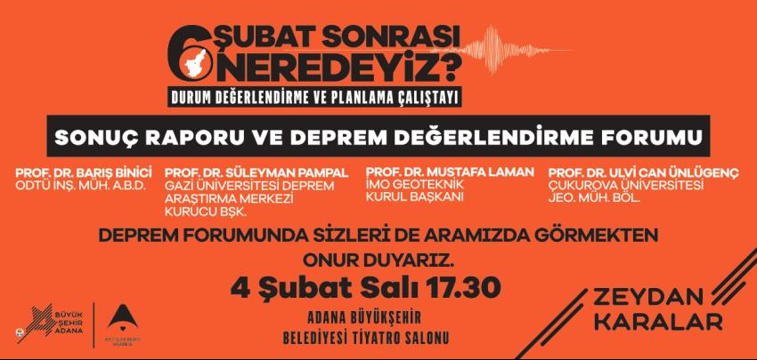 6 Şubat Sonrası Neredeyiz? Durum Değerlendirme ve Planlama Çalıştayı ile Sonuç Raporu ve Deprem Değerlendirme Forumu 4 Şubat Salı günü gerçekleştirilecek. 6 Şubat 2023 depremlerinin ikinci yıl dönümünde, deprem sonrası yapılan çalışmaları değerlendirmek ve geleceğe yönelik planlamaları güncellemek amacıyla Adana Büyükşehir Belediyesi Afet İşleri Daire Başkanlığı koordinesinde, "06 Şubat Sonrası Neredeyiz? Durum Değerlendirme ve Planlama Çalıştayı" düzenlenecek. Çalıştay kapsamında, Adana’nın dirençli kentler hedefleri doğrultusunda yapı üretim süreçleri, idari ve teknik düzenlemeler ile ruhsatlandırma süreçleri ele alınacak. Özellikle Adana Büyükşehir Belediyesi tarafından daha önce hazırlanan “Deprem Bildirgesi” doğrultusunda elde edilen sonuç raporları değerlendirilerek, yeni yapıların ruhsatlandırma, denetim ve yapı güvenliği süreçleri ayrıntılı şekilde tartışılacak. Çalıştayda ele alınacak başlıca konular şunlar: * Yapıların deprem yönetmeliklerine uygunluğu, * Zemin ve temel etüt süreçleri ve karşılaşılan zorluklar, * Yapı denetim süreçleri ve yaşanan sorunlar, * Yapım aşamasında teknik kontroller ve karşılaşılan eksiklikler, * Ruhsatlandırma süreçlerinde teknik denetimlerin artırılması, * İl risk azaltma planlarının kent ölçeğinde uygulanabilirliği, * Mevcut yapı stokunun deprem dayanıklılığı açısından değerlendirilmesi, * Riskli yapıların belirlenmesine yönelik teknik yöntemler, * Yapısal iyileştirme ve bina performans analizleri.