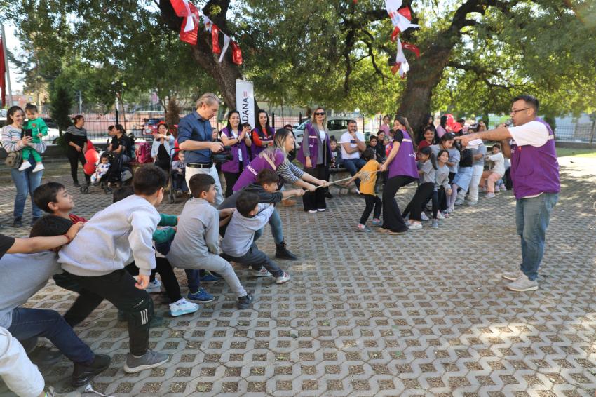 29 Ekim Cumhuriyet Bayramı; Adana Büyükşehir Belediyesi Kadın ve Aile Hizmetleri Daire Başkanlığı’na bağlı Çocuk Hizmetleri Şube Müdürlüğü’nce, Akkapı Mahallesi’nde bulunan Cemil Nardalı Konağı’nda gerçekleştirilen “Çocuk Şenliği” ile coşkulu bir şekilde kutlandı. Çocuklar ebeveynleriyle birlikte 680 yıllık tarihi anıt ağacının altında bir araya gelerek bayram coşkusunu doyasıya yaşadı. Milli Mücadele yıllarında askeri karargah olarak kullanılan ve bugün müze olarak hizmet veren tarihi mekân, Cumhuriyet Bayramı şenliğine ev sahipliği yaptı. Etkinlik boyunca çocuklar, müzik eşliğinde drama çalışmaları, grup oyunları, çuval yarışları ve davul-tef çubuklarıyla yapılan ritim çalışmalarıyla eğlenceli anlar yaşadı. Çocuklara Türk bayrağı ve balonlar dağıtılarak Cumhuriyet coşkusu paylaşıldı. Etkinlikte ayrıca, Adana Büyükşehir Belediyesi’ne bağlı psiko-sosyal destek personelleri tarafından ebeveynlere bilgilendirici broşürler dağıtıldı. |