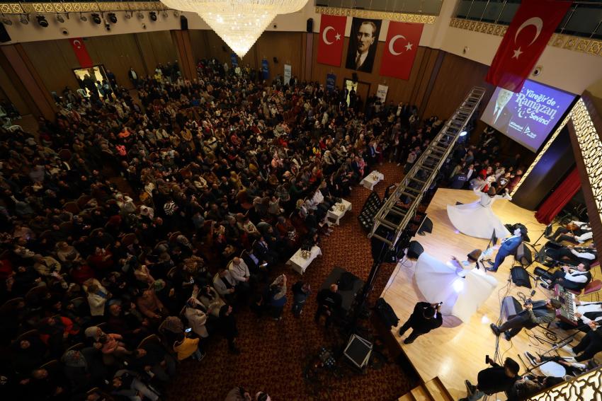 Tasavvuf müziğinin sevilen eserlerini seslendiren Abdurrahman Önül, son günlerde dillerden düşmeyen “Kâbe’de Hacılar Hu Der Allah”, “Al Eline Kalemi” ve “Koy Bizi de Cennetine” gibi eserlerini salonu dolduran vatandaşlarla birlikte söyledi. Katılımcılar da ilahilere hep bir ağızdan eşlik ederek konser boyunca coşkulu anlar yaşadı.