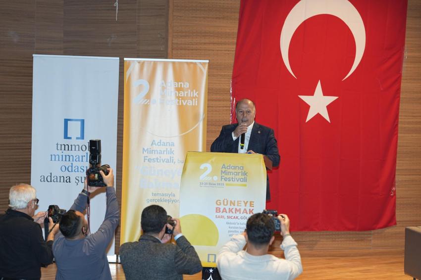“Bu yılki festivalin teması olan “Güneye Bakmak”, yalnızca bir yön tayini değil; toprağın sesine kulak vermek, güneşin sıcaklığını, gölgenin serinliğini hissetmek, coğrafyanın ruhunu anlamaktır” diyen Aksu, “Mimarlık, yalnızca estetik ve teknik bir disiplin değil; aynı zamanda çevreyle uyumlu, insan odaklı kentler yaratma sorumluluğudur. Bu festival, Adana’nın yerel değerlerini evrensel bir perspektifle buluşturarak, mimarlığın bu dönüştürücü gücünü ortaya koymayı hedeflemektedir” diye konuştu. Festivale katılanlara teşekkür eden Başkan Aksu, “Mimarlık, bir yaşam biçimidir; kültürün taşıyıcısı, insanla doğa arasında kurulan en derin bağdır” ifadelerini kullandı.