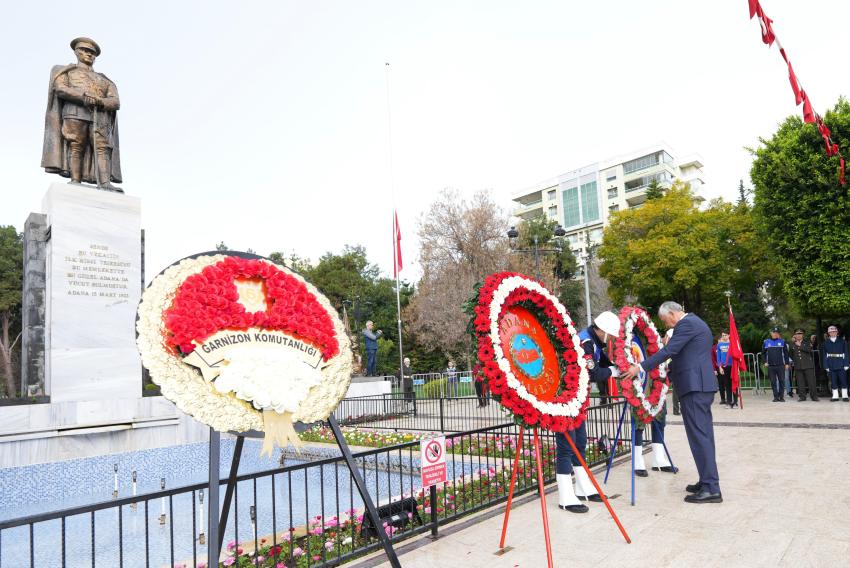 Türkiye Cumhuriyeti’nin Kurucusu Büyük Önder Mustafa Kemal Atatürk’ün Adana’ya gelişinin 101. Yıldönümü törenlerle kutlandı. İlk olarak Atatürk Parkı’nda düzenlenen törende Vali Yavuz Selim Köşger, Adana Büyükşehir Belediye Başkanı Zeydan Karalar ile 6. Kolordu ve Garnizon Komutanı Tümgeneral Mehmet Özener, Atatürk Anıtı önünde saygı duruşunda bulundu, İstiklal Marşı okudu. Sivil ve askeri erkanın katıldığı törende Vali Yavuz Selim Köşger, Başkan Zeydan Karalar ve Tümgeneral Mehmet Özener anıta çelenk koydu.