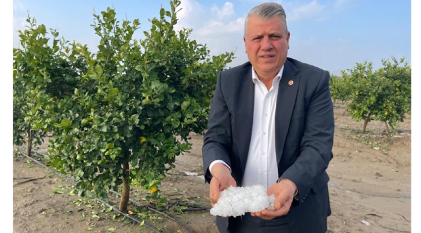 | CHP Milletvekili Ayhan Barut acil destek çağrısında bulunarak, “Zararı tespit edip karşılayın, destek verin. Çiftçinin feryadını duyun” dedi | ||