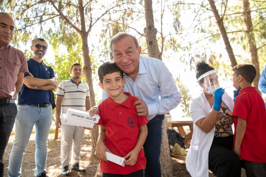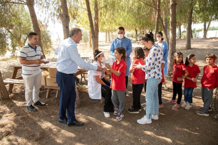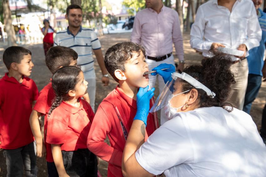 Sağlık İşleri Müdürlüğü’ne bağlı gezici ekipleri ise mahallelerdeki ilkokullarda öğrenim gören çocukların ağız ve diş sağlığı muayenesini gerçekleştirip, çocuklara diş fırçası ve diş macunundan oluşan diş fırçalama seti armağan etti.