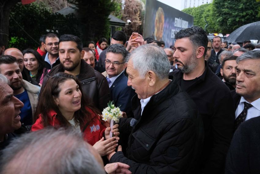 212 gün tutuklu kalmasının ardından tahliye edilen Adana Büyükşehir Belediye Başkanı Zeydan Karalar, kendisi ve diğer tutuklu belediye başkanlarına özgürlük talebiyle kurulan Adana Büyükşehir Belediyesi taş bina önündeki Adalet Çadırı’nı ziyaret etti. Coşku, sevgi ve mutlulukla karşılanan Zeydan Karalar, böyle bir sevgiyle çevrelenmenin, mutluluğunu da sorumluluğunu da artırdığını ifade etti.