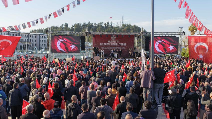 Türkiye Belediyeler Birliği Başkan Vekili ve Mersin Büyükşehir Belediye Başkanı Vahap Seçer de Kadirlilere hitap ederek, yerel seçimlerdeki başarıları, genel seçimlere de taşıyarak iktidar olacaklarını söyledi. |