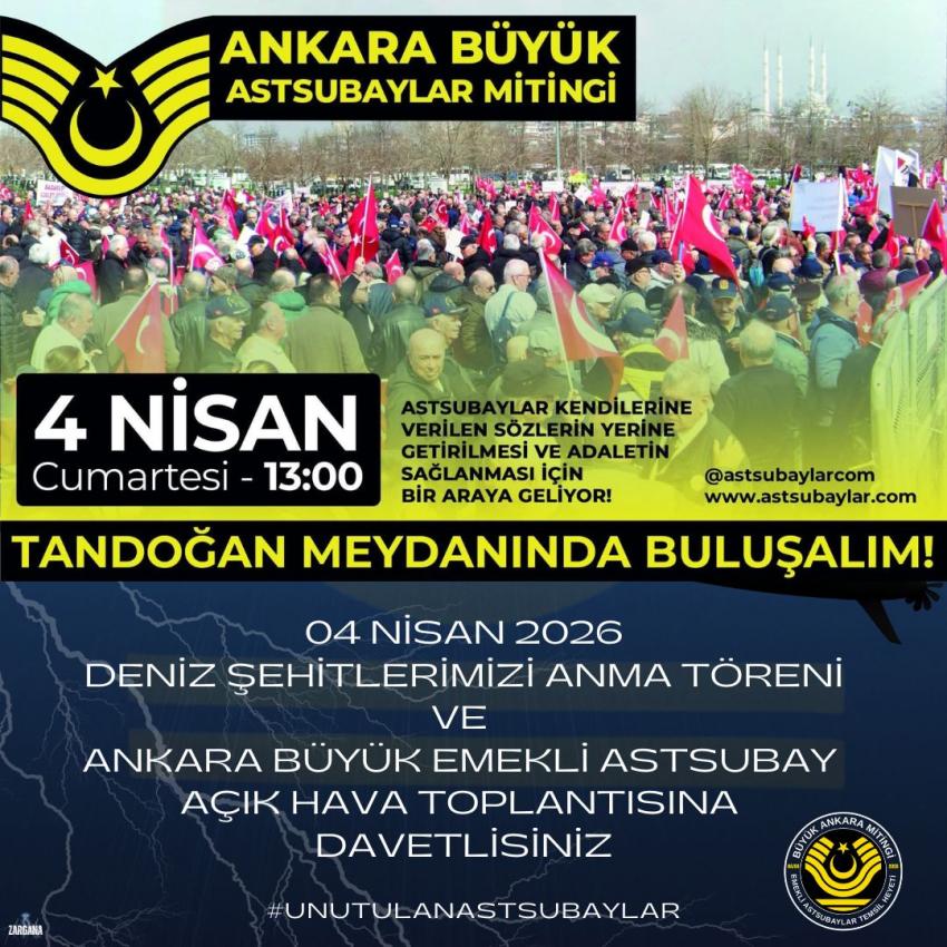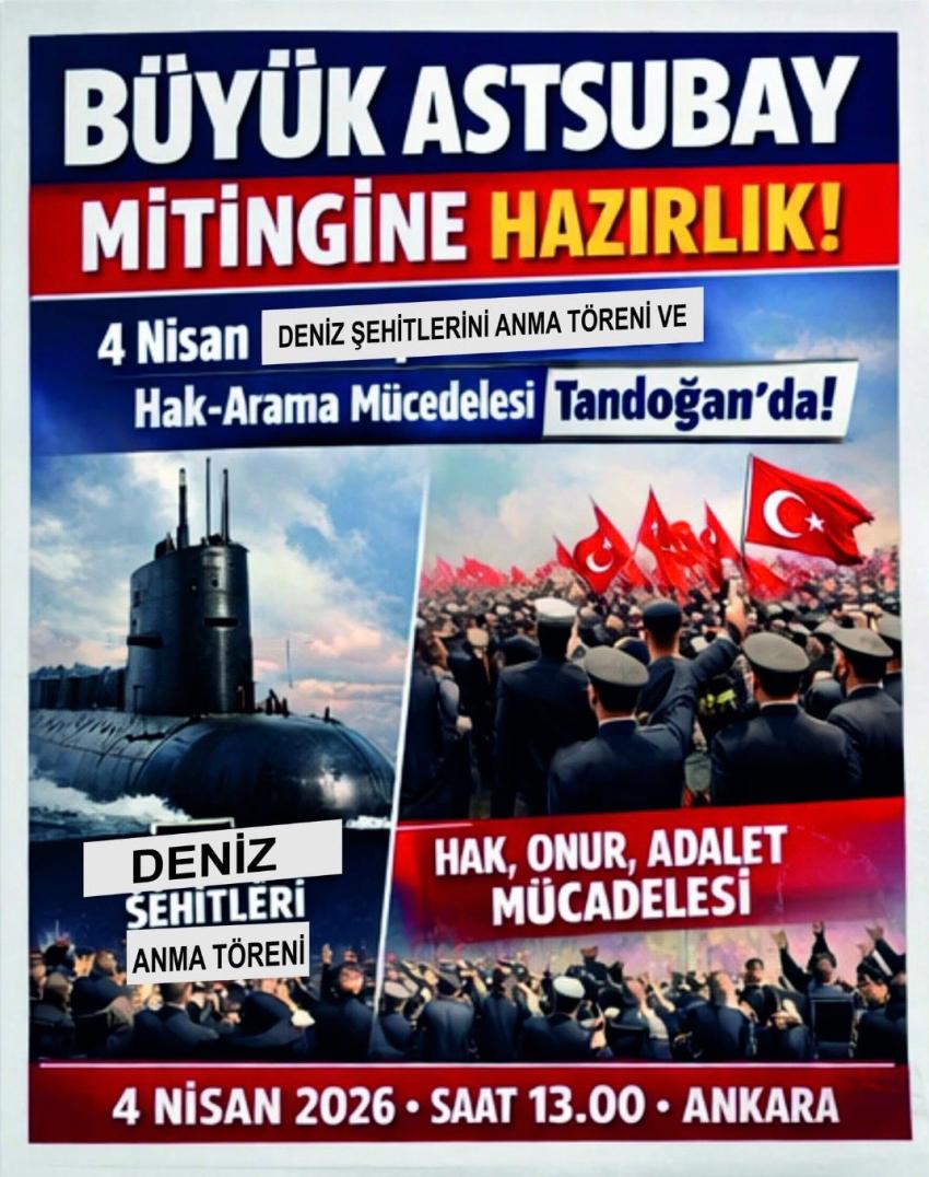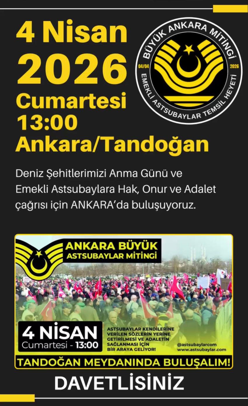Emekli Astsubaylar, Deniz Şehitlerini Anma Töreni ile hak, onur ve adalet için Ankara’da Buluşuyor. Deniz Şehitlerini Anma Töreni’nin ardından emekli astsubayların hak ve adalet talepleri meydandan yükselecek. 4 Nisan 2026 Cumartesi günü Ankara/Tandoğan Anadolu Meydanı iki anlamlı programa ev sahipliği yapacak. Türk denizcilik tarihinin acı hatıralarını taşıyan Deniz Şehitlerinin anılacağı tören ile başlayacak programın ardından Emekli Astsubaylar ve aileleri Hak, Onur ve Adalet için Anadolu Meydanı’nda düzenlenecek Büyük Astsubay Mitingi’nde buluşacak. Saat 13.00’te başlayacak açık hava toplantısında 40 yılı aşkın süredir Emekli Astsubay özlük hakları, maaş dengesizliği ve sosyal haklarına ilişkin verilen iyileştirme sözlere rağmen yapılmayan, sürekli olarak ötelenen talepleri “Hak, Onur ve Adalet” temasıyla kamuoyuna paylaşılacak. Bu anlamlı gün, hem geçmişin hüzünlü hatıralarını yad etmek hem de hak ve adalet haykırışının geleceğe dair mücadele azminin bitmeyeceğini ortaya koymak açısından tarihi bir önem taşıyor. MEDYAYA VE KAMUOYUNA ÇAĞRI Emekli Astsubay Temsil Heyeti Miting Tertip Komitesi, basın kuruluşlarını, televizyon kanallarını ve köşe yazarlarını bu anlamlı buluşmaya davet etti. Yapılan açıklamada, yıllarca devletine ve milletine sadakatle hizmet etmiş vatan kahramanlarının emeklilikte yaşadıkları ciddi geçim sorunlarına dikkat çekilmesi için kamuoyuna “hassasiyet” çağrısında bulunuldu. Emekli Astsubayların taleplerinin güçlü bir şekilde duyurulacağı bu miting; hem bir vefa borcunun ifadesi hem de adalet arayışının kararlı bir sesi olmayı hedefliyor. Düzenlenecek etkinliklerin, basın ve medya kuruluşları tarafından yoğun ilgi görmesi bekleniyor. Ulusal ve yerel basının yakından takip edeceği programların, hem anma töreninin manevi değerini hem de emekli astsubayların taleplerini geniş kitlelerin gündemine taşıması öngörülüyor. |