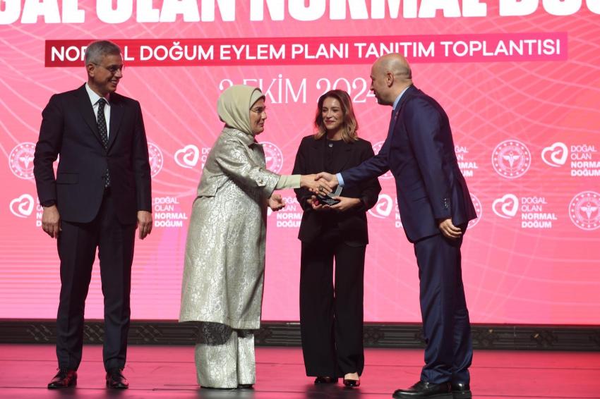 Adana İl Sağlık Müdürlüğü, Cumhurbaşkanı Recep Tayyip Erdoğan'ın eşi Emine Erdoğan’ın himayesinde yürütülen “Normal Doğum Eylem Planı” tanıtım toplantısında plaket aldı.