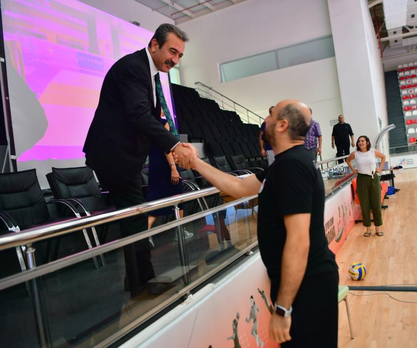 | Başkan Soner Çetin ve oyuncu Yeliz Doğramacılar Arman, Çukurova Belediyesi Spor Kulübü idmanını izleyip başarılar dilediler | ||