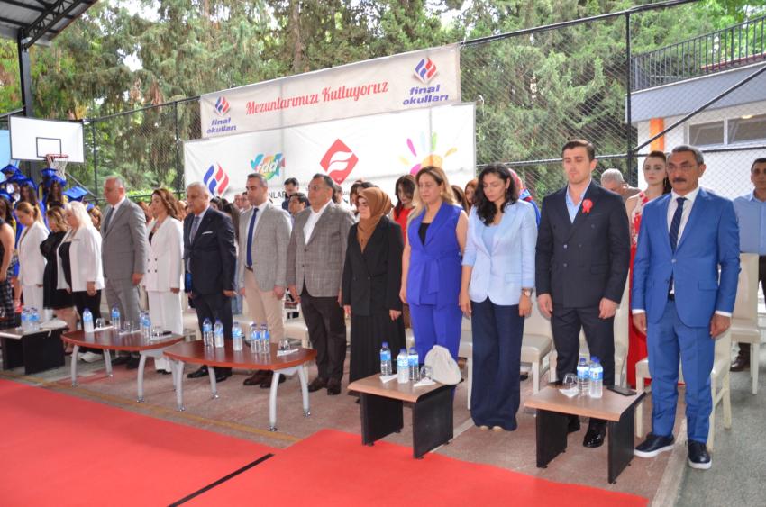 Tören Türk Bayrağı ve Final Okulları flamalarının devir teslimi, Final Andı’nın okunması ve mezun olan öğrencilere diplomalarının verilmesiyle devam etti. Heyecanlı anlara sahne olan mezuniyet törenlerinde, gelenek olduğu üzere Adana Final Fen ve Anadolu Lisesi’nden 6 birinci ve Ortaokul’dan 9 birinci mezuniyet kütüğüne plakalarını çaktı. Dereceye giren diğer öğrencilere plaketlerinin verilmesinin ardından, kepler havaya atılarak mezuniyet coşkusu yaşandı. Hep birlikte yenen mezuniyet pilavının ardından tören sona erdi.