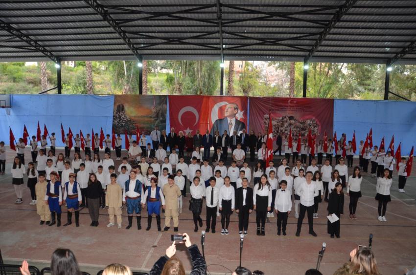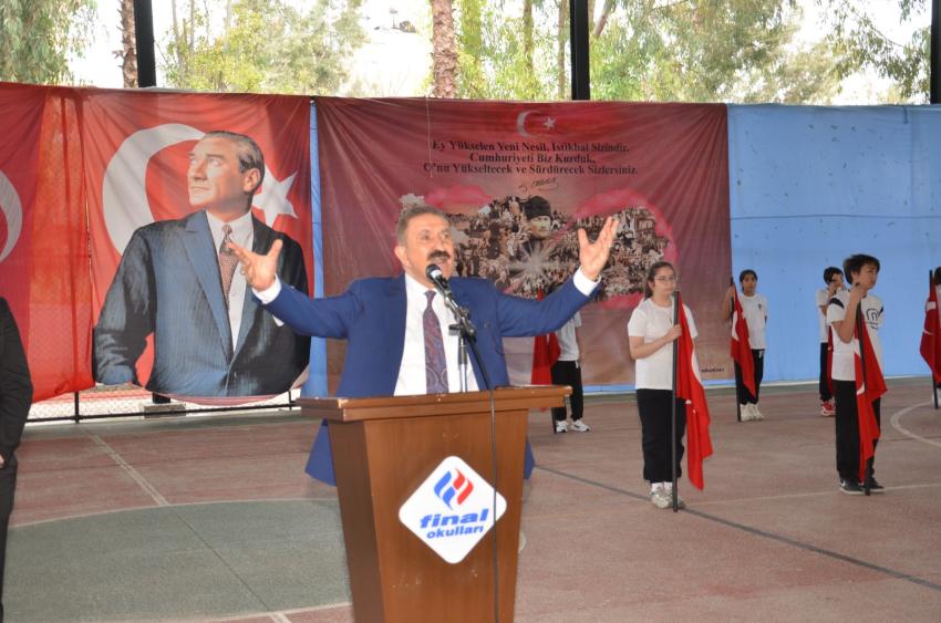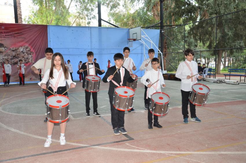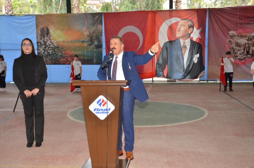 18 Mart Çanakkale Zaferi’nin 109. yıl dönümü nedeniyle Adana Final Okulları’nın bahçesinde, izleyen herkesin yeniden Çanakkale Ruhu’nu yaşadığı bir dizi etkinlik programı düzenlendi. Çanakkale Zaferi’nin simgesi Çanakkale Anıtı, Seyit Onbaşı, Şehitlik Defteri ve Çanakkale Sergisi görseli büyük ilgi gördü. Okulun açık sahasında büyük bir titizlikle sunulan programa; Final Eğitim Kurumları Genel Müdürü ve Adana Final Okulları Kurucusu Şevket Ertem, Adana Final Okulları Genel Müdürü M.Turhan Orhan, okul yöneticileri, öğretmenleri, öğrenciler ve veliler katıldı. Başta Mustafa Kemal Atatürk ve silah arkadaşları olmak üzere vatanı uğruna hayatını kaybetmiş tüm şehitler anısına saygı duruşu ve İstiklal Marşı’nın okunmasıyla başlayan tören, Kurucu Şevket Ertem’in günün anlam ve önemini ifade eden konuşmasıyla devam etti. Ertem konuşmasında, “Tarihin önemli dönüm noktalarından biri olan 18 Mart Çanakkale Zaferi’ni layığı ile kutlamak ve şehitlerimizi saygıyla anmak için toplandık. Çanakkale geçilmedi ama çok büyük bedeller ödendi. Büyük şehitler vermiş olmak pahasına bu ülkenin topraklarını, kültürünü ve geleneğini koruyan atalarımıza layık olmak ve bu bedelleri bir daha ödememek için kendi değerlerimize sahip çıkmalıyız ve çok çalışmalıyız” diyerek öğrencilere seslenen Ertem, “Söz mü?” diye sordu. Büyük alkışlarla konuşması kesilen Ertem’e öğrenciler “Söz” diye cevap verdi. Ertem, “Atalarımıza olan borcumuzu, Mustafa Kemal Atatürk’ün de dediği gibi fikri hür, vicdanı hür muasır medeniyetler seviyesinde nesiller yetiştirerek öderiz. Bu yüzden biz, Adana Final Okulları olarak çok çalışıp; bilimde, sanatta ve sporda ileri giden, atalarına sahip çıkan, vicdanı hür, fikri hür nesiller yetiştirmeye çabalıyoruz” diyerek Çanakkale şehitlerini rahmetle ve minnetle andı. Savaş dönemini anlatan görsellerle desteklenen programda coşku, gurur, hüzün ve gözyaşı bir aradaydı. Ortaokul öğrencilerinin yaptıkları sunumlarda 109. yılı anılan Çanakkale Zaferi ile ilgili türküler seslendirildi, dönemi anlatan drama gösterileri sunuldu, oratoryo ve şiirler ile izleyenleri duygulandıran gösterilerin ardından zeybek oyunu ile gurur dolu anlar yaşandı. Coşkulu bayrak geçişi töreninin ardından program sona erdi.