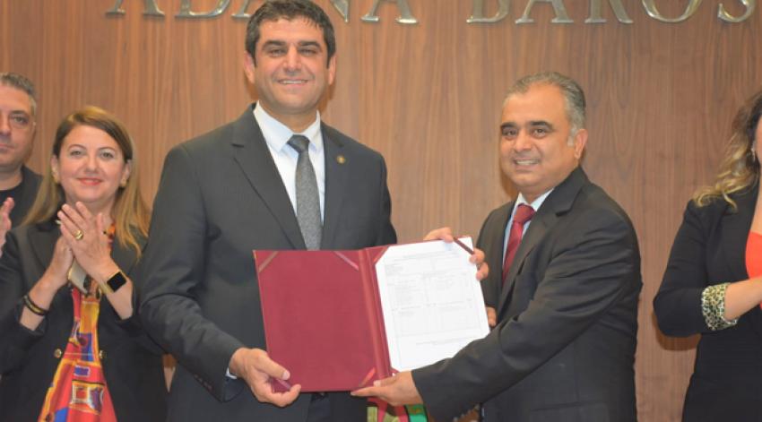 Adana Barosu'nda yeniden başkan seçilen Av. Semih Gökayaz ve yönetimi mazbatasını alarak göreve başladı.