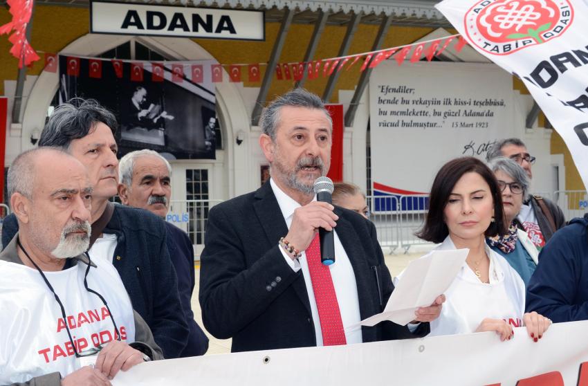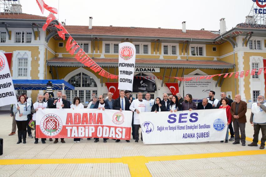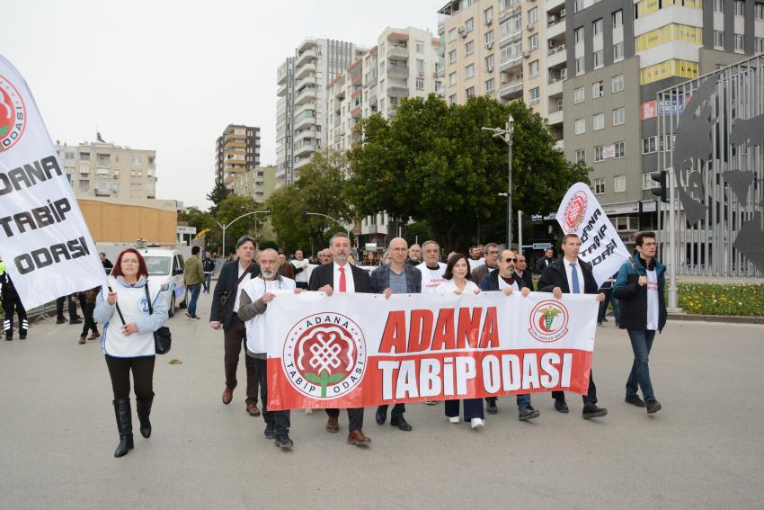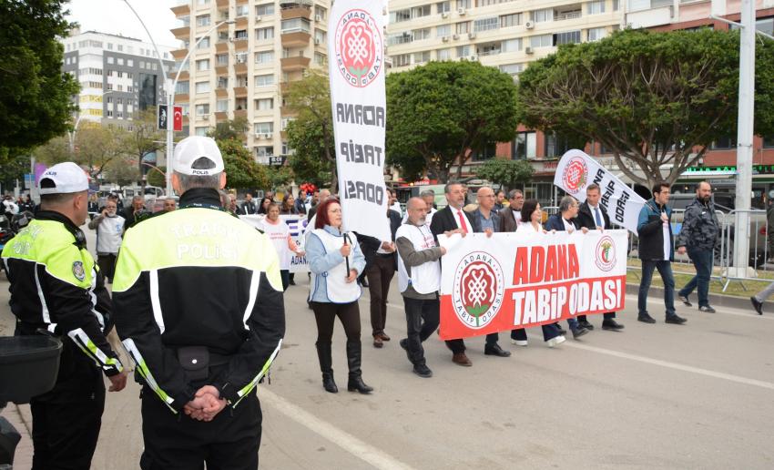 Öğle saatlerinde Kasım Gülek Köprüsü civarında bir araya gelen hekim, sağlık çalışanları Uğur Mumcu (İstasyon) Meydanına kadar yürüdü. Demokratik kitle örgütleri, sendika, dernek ve siyasi parti temsilcilerinin katılarak destek verdiği Beyaz Yürüyüş sonrası Adana Tabip Odası Genel Sekreteri Dr. Hakan Şen, günün anlamına ilişkin basın açıklaması yaptı.