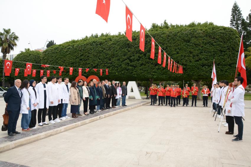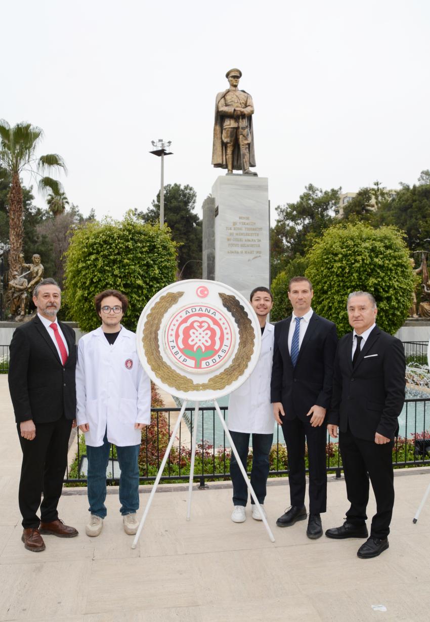 14 Mart Tıp Bayramı; Adana Tabip Odası Yöneticilerinin Adana Büyükşehir Bandosu eşliğinde Atatürk Anıtı Önüne çelenk bırakıp, saygı duruşunda bulunulup, İstiklal Marşı’nın okunmasıyla başladı.