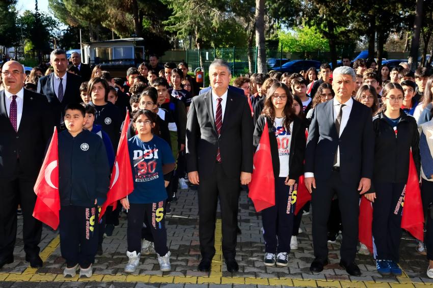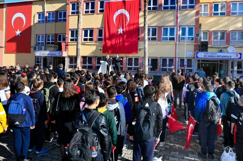 Adana Valisi Mustafa Yavuz, DSİ Baraj Ortaokulunda düzenlenen Bayrak Töreni’ne katıldı. İl Millî Eğitim Müdürü Mehmet Nurettin Aras, İl Millî Eğitim Şube Müdürleri, okulda görev yapan idareciler ve öğretmenler, öğrenciler ile velilerin katıldığı törende konuşma yapan Vali Mustafa Yavuz; “Bayrağımız; bağımsızlığımızın, birlik ve beraberliğimizin en güçlü simgesidir. Her dalgalanışında, bu topraklar uğruna verilen büyük mücadeleleri bizlere hatırlatır. Bizler de bu bilinçle; evlatlarımızın güvenliği, huzuru ve nitelikli eğitimi için kararlılıkla çalışıyor, okullarımızda güvenlik tedbirlerini güçlendirerek güçlü yarınlar inşa ediyoruz.” dedi. Konuşmasını “Bugün, ilimizde yaklaşık 1560 okul ve kurumda yaklaşık 522 bin öğrencimiz ders başı yaptı. Sevgili öğrenciler, sizler bu vatanın yarınlarısınız. Kıymetli öğretmenlerimiz; sizler sadece bilgi aktaran değil, öğrencilerimizin hem akademik hem de ahlaki gelişiminde en önemli görevi üstlenen rehberlerimizsiniz.” cümleleriyle sürdüren Vali Mustafa Yavuz; güvenli, huzurlu ve nitelikli bir ortamda eğitim faaliyetlerinin gerçekleştirilmesinin en büyük öncelikleri olduğunu vurguladı. Şanlıurfa ve Kahramanmaraş’taki okullarımızda yaşanan üzücü olayların hepimizi derinden etkilediğini belirten Vali Mustafa Yavuz; saldırılarda yaşamını yitiren öğretmenimize ve öğrencilerimize Allah’tan rahmet, yaralılarımıza acil şifalar diledi. Bu tür hadiselerin bir daha yaşanmaması için gerekli tüm tedbirleri artırarak, çocuklarımızın ve öğretmenlerimizin emniyetini en üst düzeyde sağlamayı sürdüreceklerini ifade eden Vali Mustafa Yavuz; “İnşallah bundan sonra bu tür acıların yaşanmadığı, sizlerin yüzünüzün hep güldüğü, hem ilimizde hem ülkemizde çocuklarımızın okula cıvıl cıvıl geldiği, sevincinizin okullarımızın her yerinde yankılandığı çok güzel dersler olur. Hepinize bugünden başlamak üzere iyi dersler diliyorum. Aramızda 8. sınıfta olan öğrencilerimize de yaklaşan LGS’de başarılar diliyorum. İnşallah her şey gönlünüzce olur. İlimiz genelinde Valiliğimiz koordinesinde her türlü güvenlik önlemini aldığımızı belirtiyor, hepinizi gözlerinden öpüyorum. Sizden beklentimiz; çok çalışmanız, değerlerimize sahip çıkmanız ve birbirinize her zaman saygı ve hoşgörüyle yaklaşmanızdır. Çünkü güvenli bir okul ortamı, sadece alınan tedbirlerle değil; aynı zamanda sevgi, saygı ve dayanışma ile mümkün olur. Hepinize başarılar diliyorum.” dedi |