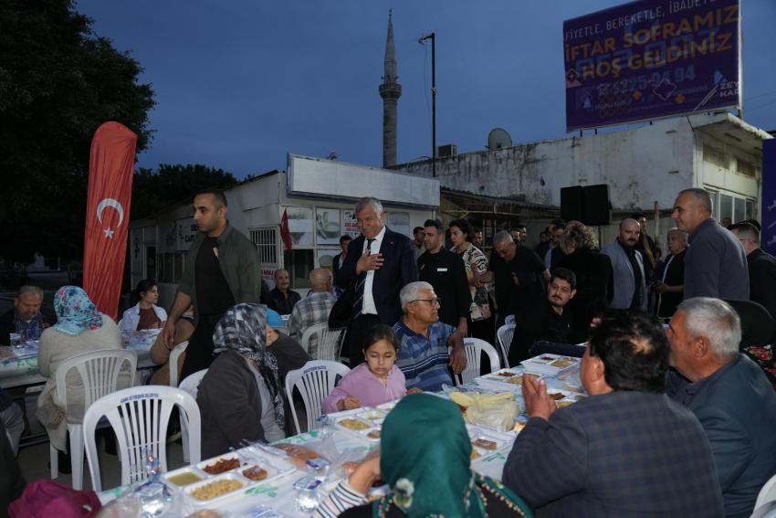 Adana Büyükşehir Belediyesi iftar programlarına Yumurtalık ilçesinde devam etti. Adana Büyükşehir Belediye Başkanı Zeydan Karalar, Yumurtalık halkıyla iftarda buluştu. İftar programına Başkan Zeydan Karalar’ın yanı sıra, Yumurtalık Belediye Başkanı Erdinç Altıok, siyasiler, muhtarlar, belediye meclis üyeleri ve Yumurtalık halkı katıldı.