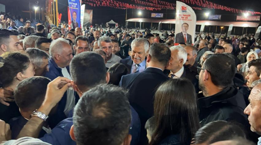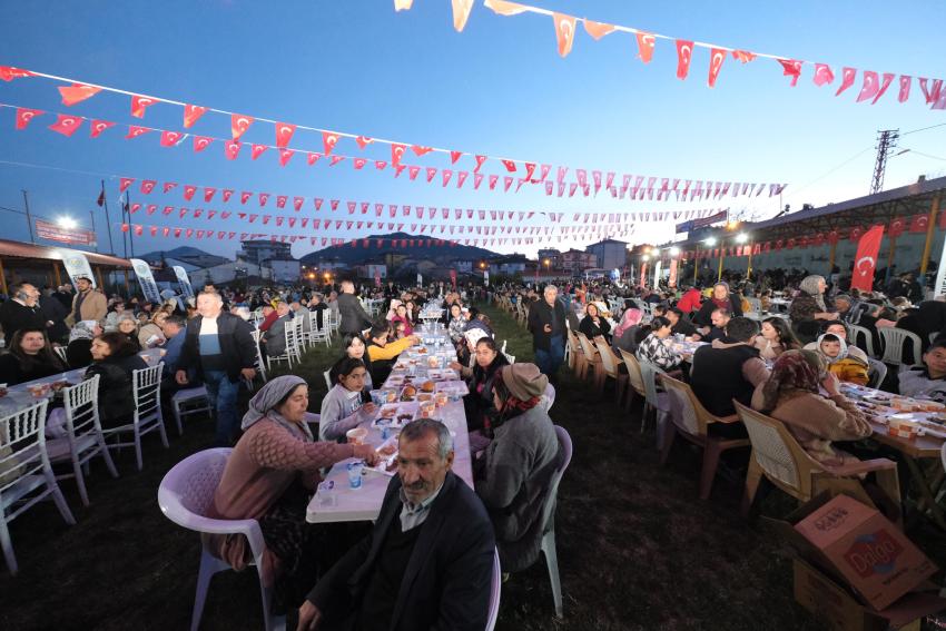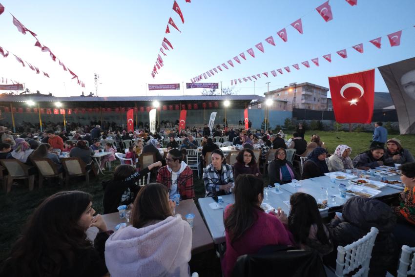 Adana Büyükşehir Belediyesi kentin dört bir yanında iftar sofraları kurmaya devam ediyor. Başkan Zeydan Karalar, ikinci dönemin ilk ilçe iftarını, CHP’li Belediye Başkanı Ahmet Aktürk’ün de katılımıyla Tufanbeyli’de, Tufanbeylilerle geçirdi. HİZMET ARTARAK SÜRECEK Sözlerine Tufanbeyli halkına teşekkür ederek başlayan Başkan Zeydan Karalar, “Tufanbeyli bugüne kadar aldığı hizmetlerin çok daha fazlasını almaya devam edecek. Her köye ne söz vermişsek hepsini yapacağız. Adana’yı seviyoruz, halkımıza hizmet etmeyi seviyoruz. 5 sene daha gece gündüz demeden yorulmadan, aynı hızla hizmet etmeye devam edeceğiz” dedi.