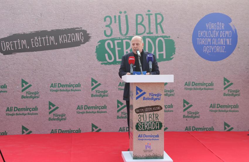 YÜREĞİRLİ KADIN ÇİFTÇİ VE ÜRETİCİYE BÜYÜK DESTEK Yüreğir Ekolojik Demo Tarım Alanı’nı tıklım tıklım dolduran coşkulu kalabalığın alkışları eşliğinde eşi Fidelya Demirçalı ile birlikte törene katılan Başkan Ali Demirçalı, “Bugün burada ‘Üretim, Eğitim, Kazanç… 3’ü Bir Serada’ sloganımızla açılışını gerçekleştirdiğimiz proje bazlı ekolojik sera alanımız 1 dönümü kapalı, 2 buçuk dönümü açık tarım alanı olmak üzere toplam 3 bin 500 metre kareden oluşmaktadır. Ekolojik seramız, dışarıdan bağımsız, doğaya zarar vermeyen tamamen güneş enerjisi ile çalışan, elektrik ve suyunu üretebilme yeteneğine sahiptir. Bu alanda yaklaşık 150 kadın çiftçi ve üreticimize tarımsal eğitimler verilecektir” diyerek konuşmasına başladı.