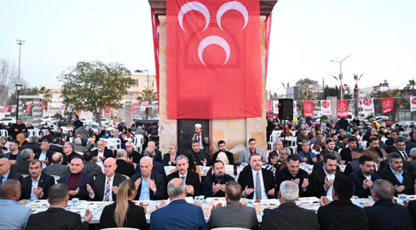Milliyetçi Hareket Partisi (MHP) Sarıçam İlçe Başkanlığı binası önünde İlçe Başkanı Eyüp Akbulut’un ev sahipliğinde düzenlenen iftar programına, Sarıçam ilçe Kaymakamı Murtaza Dayanç, Milliyetçi Hareket Partisi (MHP) Adana İl Başkanı Yusuf Kanlı, Milliyetçi Hareket Partisi (MHP) MYK Üyesi Mustafa İzgioğlu, Sarıçam Belediye Başkanı Bilal Uludağ, Sarıçam İlçe Emniyet Müdürü Yusuf Cankurtaran, Ülkü Ocakları Adana İl Başkanı Cem Tutsoy, Milliyetçi Hareket Partisi (MHP) Yüreğir İlçe Başkanı Ayhan Bulan, Milliyetçi Hareket Partisi (MHP) Çukurova İlçe Başkanı Mehmet Şahin, Ak Parti Sarıçam İlçe Başkanı Bayram Özdemir ve yönetimi, Büyük Birlik Partisi (BBP) Sarıçam İlçe Başkanı Mehmet Şerif Dumrul, Sarıçam Ülkü Ocakları Başkanı Yasin Şahin, Belediye Meclis üyeleri, muhtarlar, sivil toplum kuruluşlarının temsilcileri, teşkilat mensupları ve vatandaşlar katıldı.