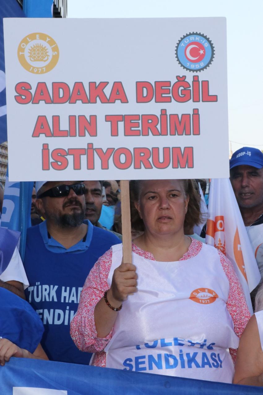 | Türk-İş, AK Parti il binası önünde basın açıklaması ile eylemini sürdürdü. Gülnar, “Bu ülkenin temel direğiyiz. Alın terine değer verilmediği sürece adalet sağlanamaz “ diyerek uyarıda bulundu | ||
