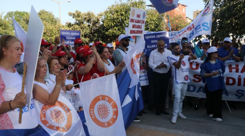 AK parti İl Başkanlığı önünde düzenlenen basın açıklamasına Türk-İş’e bağlı Sendikaların Başkan, Yöneticileri ile çok sayıda kamuda çalışan işçi katıldı. Bölge Başkanı Edip Gülnar Toplu İş Sözleşme görüşmelerinde başlayan süreci değerlendirerek, “2025 yılı Toplu İş Sözleşmesi sürecinde kamu işçilerinin insanca yaşam taleplerini görünür kılmak, kamuoyunu bilgilendirmek ve hükümetin sorumluluklarını yerine getirmesini sağlamak amacıyla başlatmış olduğumuz eylem süreci kararlılıkla devam etmektedir. Geçtiğimiz hafta işyerleri önünde gerçekleştirdiğimiz bildiri okumalarının ardından, bu hafta şehir meydanlarında kitlesel basın açıklamaları gerçekleştirdik. Tüm illerimizde eş zamanlı olarak planlanan bu açıklamalar, kamu emekçilerinin birliğini ve taleplerinin ciddiyetini gösterecek önemli bir adımdı. Bugün de eylem planımız dâhilin de, Türkiye’nin dört bir yanında AK Parti İl Binalarının önündeyiz. Çünkü artık sabrımız kalmadı! Çünkü artık yoksulluğa, adaletsizliğe, duyarsızlığa tahammülümüz kalmadı” dedi. Türk-4. Bölge Başkanı Edip Gülnar, açıklamasına şöyle devam etti: “Geçim derdi bu kadar büyümüşken, bizlere sunulan sözde zam teklifleriyle alay ediliyor. TÜİK’in rakamlarıyla, halkın gerçeği gizleniyor. Az kazanandan çok vergi alınıyor. Hayat pahalılığı karşısında maaşlarımız buharlaşıyor. Artık yeter! İşte bu yüzden, bu seferde buradan AK Parti il binaları önünden taleplerimizi bir kez daha dile getirecek sesimizi hep birlikte yükselteceğiz. TÜİK’in verileri yaşadığımız geçim sıkıntısını yansıtmıyor. Sözleşme teklifleri, TÜİK'in verilerine değil, pazarda, mutfakta yaşanan gerçeklere göre hazırlanmalıdır. İnsanca yaşanabilecek, geçim koşullarına uygun bir ücret talep ediyoruz. Hükümetin masaya getirdiği teklifler, emekçiyi oyalamaktan ibarettir. Toplu sözleşme, emekçinin iradesine ve yaşam şartlarına uygun olmalıdır. Emekçilerin sesi dikkate alınmadan yapılan hiçbir teklif meşru değildir. İşçinin maaşı daha eline geçmeden vergiyle eriyor. Az kazanandan çok, çok kazanandan az vergi alınan bu sistem adaletsizdir. Gelir vergisi matrahı adaletsiz sistemi sona erdirecek şekilde adil ve kademeli olarak düzenlenmelidir. Kira, fatura, gıda, ulaşım... Her şey zamlandı ama maaşlarımız erimeye devam ediyor. Emekçiler kredi kartlarıyla, borçla, eksik beslenmeyle yaşamaya zorlanıyor. Halkın sofrasına, cebine, yaşadığı hayata bakılmadan ekonomi toparlanamaz! Taşeron sistemine, güvencesiz çalışmaya son verilmelidir. Kamu işçisinin geleceği koruma altına alınmalıdır. Bugün işi olan, yarını için kaygı duymamalıdır. Alın terine değer verilmediği sürece adalet sağlanamaz. Biz çalışıyoruz, biz üretiyoruz, biz bu ülkenin temel direğiyiz. Emek yok sayılırsa, üretim de adalet de kalkınma da mümkün değildir! Bugün buradayız, çünkü başka çaremiz kalmadı. Çünkü duymayan kulaklara, görmeyen gözlere artık ses yükseltme zamanı geldi. Sadaka değil, hakkımızı! İkram değil, emeğimizin karşılığını istiyoruz! Sefalet değil, onurlu yaşam istiyoruz! Ve unutulmasın: İşçiyiz, emekçiyiz, haklıyız, kazanacağız hem de… Direne direne kazanacağız! TÜRK-İŞ Konfederasyonu olarak gayet iyi niyetlerimizle sizlere anlatamadık. Her platformda söylediğimiz gibi bizim sizlerin verdiğiniz ücretlerle geçinmemiz mümkün değil. Düzeltin dedik, masada halledelim dedik, biz işçiler eylemlere sokağa dökülmeyelim dedik. Grevler yapmayalım dedik. Öyle bir sevdamız da yok dedik. Ancak yetkililer bizleri duymadı 600 bin kamu işçisini yok sayarak, gülünç duruma düşecek rakamlar vererek adeta bizlerle dalga geçtiniz. Sizler böyle davrandığınızdan dolayı da bizlere eylemlerden ve sonrasında grev yapmaktan başka çare bırakmadınız. Bu tavırlarınız devam ederse hiç istemeyerek de olsa greve kadar gidilecek haberiniz olsun… Bu vatan bizlerin bu vatanı en az sizler kadar bizler de çok seviyoruz. Kaosa sokmaya hiç niyetimiz yok sizlerin de olmadığını ümit ettiğini düşünerek, sizlerin işçisi, bizlerin üyesi olan bu emekçi kardeşlerimizi açlığa mahkûm etmeden güzel bir Toplu İş Sözleşmesi yaparak haklarımızı vermenizi istiyoruz.”