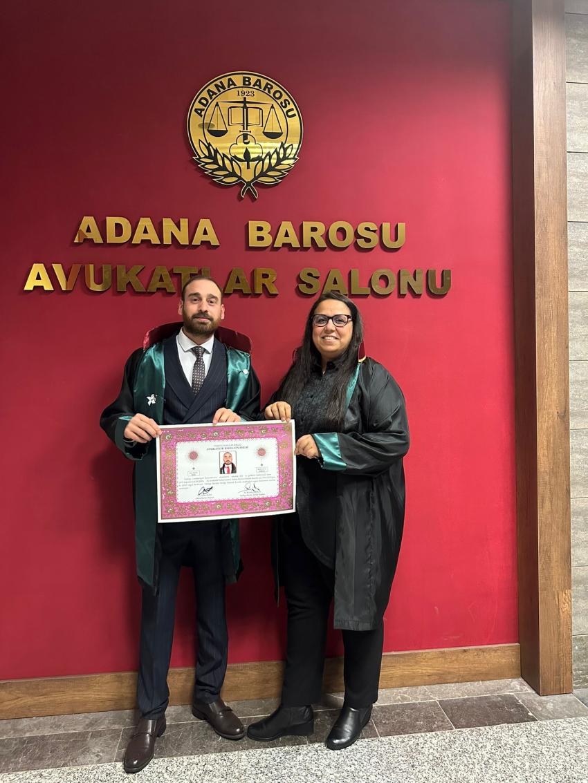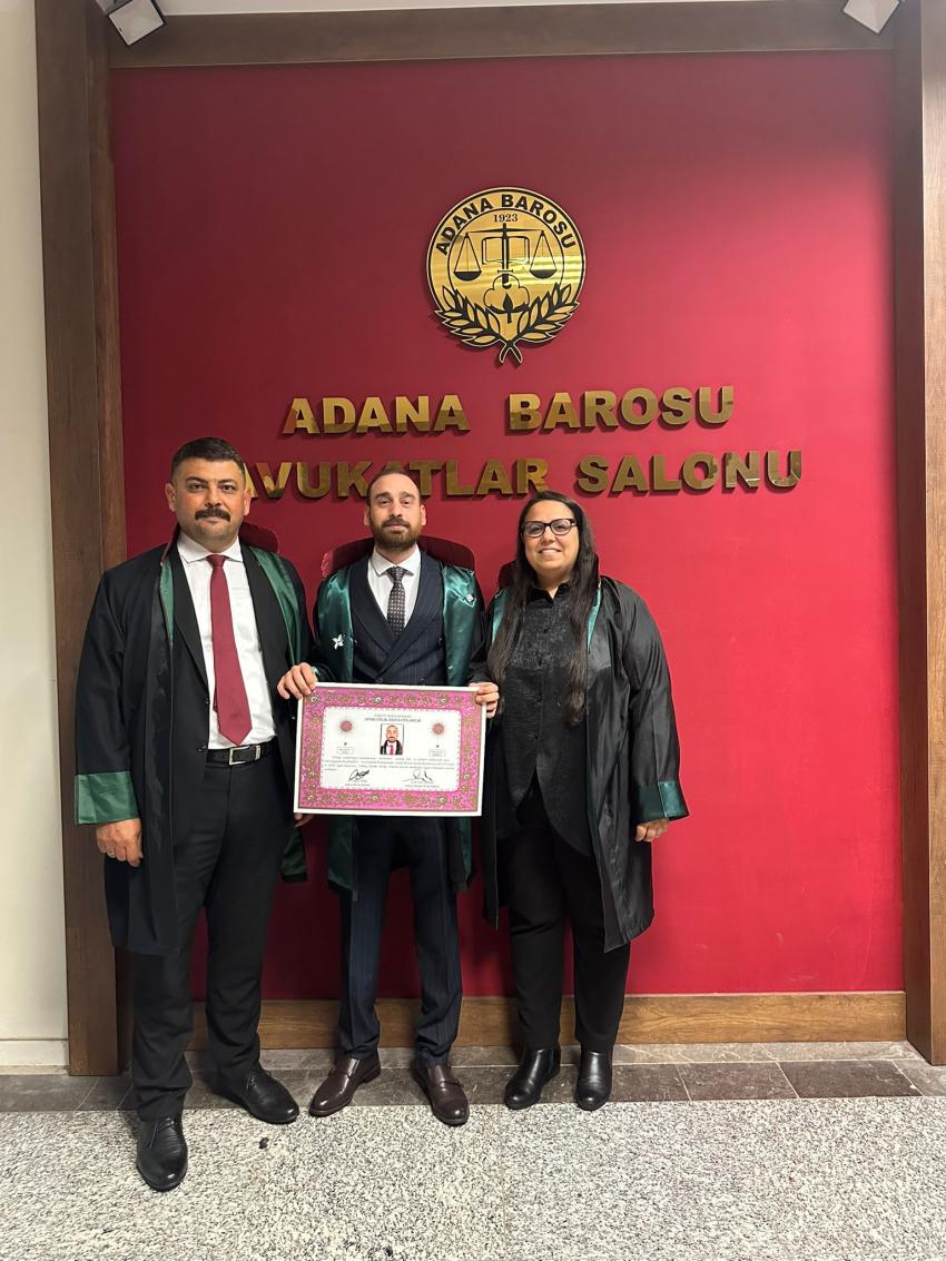 Hukuk fakültesinden başarıyla mezun olan Salih Şen, Adana Barosu avukatlarından Av. Hülya Ceylan Seçer ve Av. Ahmet Oğuz Seçer’in yanında stajını tamamladı. Adana Baro Başkanlığı makamında gerçekleşen ruhsat törenine Baro Başkanı Av. Volkan Böke, Av.Hülya Ceylan Seçer, Av.Ahmet Oğuz Seçer, Yönetim Kurulu üyesi avukatlar ile Salih Şen’in ailesi katıldı.
