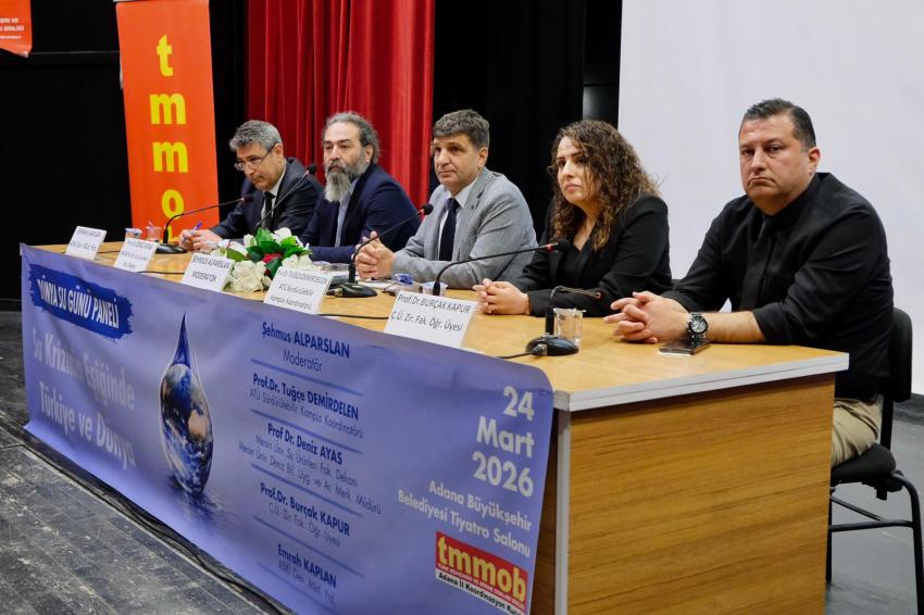 Türk Mühendis ve Mimar Odaları Birliği (TMMOB) Adana İl Koordinasyon Kurulu ve Adana Büyükşehir Belediyesi tarafından dünya su gününde, “Su krizinin eşiğinde Türkiye ve Dünya “ konulu panel düzenlendi. Adana Büyükşehir Belediyesi Tiyatro Salonunda, moderatörlüğünü Gıda Mühendisi Şehmus Alparslan’ın yaptığı panelde, Adana Büyükşehir Belediye Başkan Vekili Güngör Geçer yaptığı konuşmada, suyun önemine değindi, Adana’da içme suyu konusunda yapılan çalışmaları anlattı. Geçer, şöyle konuştu: “Küresel iklim krizinin kapımızda değil, artık penceremizi zorladığı bir dönemden geçiyoruz. Su sonsuzdur yanılgısının yerine, su değerlidir ve tükenmektedir gerçeğini anlatır.. Suyu geleceğini korumak için sadece teknik altyapı çalışmalarının yanı sıra suyumuzu korumaya yönelik esasen bir anlayış, bir farkındalık inşa etmek istiyoruz. Ne yapıyoruz peki? Kayıp ve kaçakla mücadele ediyoruz. Modern arıtma tesisleri yapıyor, doğaya bıraktığımız suyun temizliğini en üst standartlarda tutuyoruz. Tarımda tasarruf adımları atıyoruz. Vahşi sulama yerine modern teknikleri destekleme noktasında çalışıyoruz. Su yönetimi asla belediyelerin, mühendislerin, aktivitelerin, hükümetlerin tek başına yönetebileceği bir iş olarak görmüyoruz. Bu toplumsal bir uzlaşı ve bilinç meselesidir. Doğaya hükmetmek değil, doğayla uyum içerisinde yaşamak zorunda olduğumuzu vurgulamak isterim.“ TMMOB Adana İl Koordinasyon Kurulu (İKK) Sekreteri ve MMO Adana Şube Başkanı Kerem Şahin, su krizi, doğanın değil; yanlış politikaların, kontrolsüz büyüme hırsının ve eşitsizliklerin sonucu olduğunu söyledi. “Su Krizi Bir Doğa Olayı Değil, Politik Bir Tercihtir. diyen Şahin, şöyle konuştu: “Bugün dünyada 2 milyardan fazla insan temiz suya erişemiyor. Bu rakam, kuraklık kadar; yanlış kentleşme, plansız tarım politikaları, suyun özelleştirilmesi, endüstriyel talanın bir sonucudur. Bir ülkenin petrolünü alırsınız, ekonomisini etkilersiniz. Ama bir ülkenin suyunu kontrol ederseniz, toplumunu, tarımını, sağlığını, geleceğini kontrol edersiniz. İklim krizi artık uzak bir ihtimal değil; kapımızda değil, içimizde. Devletler suyu bir “hizmet” gibi sunamaz. Su, bir haktır. Bu nedenle devletlerin görevi: suyu özelleştirmek değil, korumak; şirketlere devretmek değil, halkın kullanımına sunmak; suyu bir gelir kapısı değil, bir yaşam kaynağı olarak görmek olmalıdır. Buradan yerel yönetimlere de seslenmek istiyorum. Su faturaları, insanların temel ihtiyaçlarını karşılayamayacak kadar yüksek. Bu kabul edilemez. Bir insanın susuz kalması, hem devletin hem de yerel yönetimlerin başarısızlığıdır. Suyunu koruyamayan toplumlar, geleceğini koruyamaz. Suyunu yönetemeyen devletler, bağımsızlığını yönetemez. Suyunu şirketlere teslim eden ülkeler, halkının kaderini teslim eder. Bu nedenle su politikası, ulusal güvenlik politikasıdır. Suyun korunması, bir çevrecilik romantizmi değil; bir varoluş mücadelesidir. Suya Sahip Çıkmak, Hayata Sahip Çıkmaktır. Bugün burada konuştuğumuz her şey, aslında tek bir gerçeğe çıkıyor: Su, geleceğin en kritik politik meselesidir. Eğer suyu koruyamazsak; demokrasiyi, sağlığı, tarımı, ekonomiyi, toplumsal barışı koruyamayız. Üzülerek görüyoruz ki tüm uyarılarımıza rağmen, içilebilir su kaynaklarımızın tükenmesine ve doğal afet kaynaklı yıkımların artmasına sebep olan merkezi ve yerel yönetim politikalarında ısrar edilmektedir. Doğanın metalaştırılmasının bir insanlık suçu olduğunu, sağlıklı ve temiz bir dünyada yaşamanın ekonomik kaygılardan bağımsız bir hak olduğunu bir kez daha vurgulamak istiyoruz” Çukurova Üniversitesi Ziraat Fakültesi Tarımsal Yapılar ve Sulama Bölümü Öğretim Üyesi Prof. Dr. Burçak Kapur, ise şunları söyledi: “Eğer gerekli önlemler alınmazsa, 2050’ye kadar Türkiye'nin 60'ı çölleşme riskiyle karşı karşıya kalacak. Çukurova, Türkiye’nin tarım üssüdür. Ancak aşırı sıcaklıklar ve kuraklık, buradaki tarımsal sürekliğini tehdit ediyor. Toprak açısından önemli olan toplam yağış değil, zamana yayılmasıdır. 3 ayda düşmesi gereken yağış 2 günde düşerse: Su toprağa işlemez. Yüzey akışı artar. Baraj fazlası boşaltılır, yer altı beslenmez. Kuraklık etkisi devam eder. Bitki açısından suyun varlığı değil, erişilebilirliği önemlidir. Şiddetli yağış kök bölgesine infiltre olmaz. Kurak dönem stres oluşturur. Sonuç: Verim düşer, Su yönetimi zorlaşır. Sonuçlar, iklim değişikliğinin Seyhan Havzası su kaynakları genelinde bir azalmaya neden olacağını göstermektedir. Yüzeysu kaynakları, kar depolaması ve yeraltısuyu potansiyelinde 30’a varan önemli azalışların gerçekleşeceği kestirilmektedir.” Mersin Üniversitesi Su Ürünleri Fakültesi, Deniz Bilimleri Uygulama ve Araştırma Merkezinden Prof. Dr. Deniz Ayas, “Tatlı Su Krizi: Ekosistemlerin Sessiz Çöküşü” konulu sunumunda, “Dünya yüzeyinin 71’i suyla kaplı olmasına rağmen kullanılabilir tatlı su oranı sadece yüzde 2.5. Bunun da: yüzde 68’i buzullarda, yüzde 30’u yeraltı sularında. Erişilebilir yüzey suyu (göl + akarsu): yüzde 1’den az . Yani kriz aslında su var ama kullanamıyoruz krizi değil, yanlış yönetim ve aşırı kullanım krizi” dedi. “Göller küçülüyor. Nehirler mevsimsel akışını kaybediyor. Sulak alanlar kuruyor. Bu durum “hidrolojik kopuş (hydrological disconnect)” yaratır” diyen Ayas, “biyoçeşitlilik üzerine etkileri konusunda da, “Tatlı su ekosistemleri Dünya yüzeyinin 1’inden azını kaplar. Ama türlerin 10’unu barındırır. Etkileri, Habitat kaybı, Üreme alanlarının yok olması, Oksijen azalması (hipoksi), Sıcaklık art