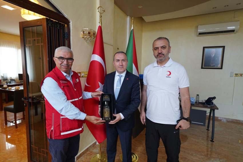 Ziyaret sonunda, Türk Kızılay heyeti tarafından Türkiye Cumhuriyeti Hartum Büyükelçisi Fatih Yıldız’a takdimlerde bulunuldu.