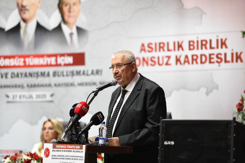 Milliyetçi Hareket Partisi (MHP) Genel Başkanı Devlet Bahçeli’nin himayelerinde, MHP Adana İl Başkanlığı’nın ev sahipliğinde düzenlenen “Asırlık Birlik, Sonsuz Kardeşlik” temalı “Terörsüz Türkiye İçin Millî Birlik ve Dayanışma Buluşmaları” toplantısı muhteşem bir coşkuya, heyecana ve dayanışmaya sahne oldu. ŞEHİT AİLELERİ VE GAZİ AİLELERİ DE KATILDI Divan Başkanlığı’nı MHP Genel Başkan Yardımcısı Semih Yalçın’ın yaptığı, Adnan Menderes Kapalı Spor Salonu’nda gerçekleştirilen toplantıya Adana’nın yanı sıra Osmaniye, Hatay, Kahramanmaraş, Karaman, Kayseri, Mersin, Nevşehir ve Niğde il başkanları; Ak Parti İl Başkanı Tamer Dağlı, MHP ve Ak Parti Milletvekilleri, Şehit Aileleri Derneği ve Gaziler Derneği başkanları, ayrıca MYK ve MDK Üyeleri, belediye başkanları, Ülkü Ocakları başkanları, Kadın Aile Çocuk ve Engelli Politikaları (KAÇEP) başkanları, il ve ilçe yöneticileri, Oda başkanları, muhtarlar, STK temsilcileri katıldı. SEMİH YALÇIN Toplantıda konuşan MHP Genel Başkan Yardımcısı Edip Semih Yalçın, Türkiye'nin, kuruluş aşamasındaki ruhtan kopmaksızın, bölgesinde ve dünyada tam bağımsızlık hedefine ilerlediğini söyledi. Yalçın “Ülkemizi 21. yüzyılda lider devlet konumuna yükseltmek ve 'Türkiye Yüzyılı' ülküsünü gerçekleştirmek maksadıyla atılan temeller, ‘Terörsüz Türkiye’ hamlesiyle yeni bir safhaya ulaşmıştır. Terörsüz Türkiye adımı, köklü ve sağlam referanslara dayanmakta, ilhamını büyük Türk tarihinden almaktadır. Tarih boyunca kurulan büyük Türk devletleri, dünyaya nizam verecek kudrete erişmelerini, önce iç barış ve bütünlüğü sağlamalarına borçludur." dedi. İSMAİL ÖZDEMİR MHP Genel Başkan Yardımcısı İsmail Özdemir de, "Terörsüz Türkiye"nin, ülkeyi daha güçlü, büyük, zengin ve huzurlu hale getirme ülküsü olduğunu belirtti. Özdemir, "Terörsüz Türkiye, Türkiye'yi küresel ve süper güç ülke yapma hedefimizin ilk ve en önemli adımıdır. Terörsüz Türkiye, bizi kendi içimize hapsederek, enerjimizi, kaynaklarımızı ve yine kendimizi tüketmek üzere kurgulanan habis senaryoları Türk milletinin irade ve kudretiyle yırtıp atmasıdır.” ifadesini kullandı. FİLİZ KILIÇ "Terörsüz Türkiye"nin sadece güvenlik meselesi değil aynı zamanda kalkınma, refah ve huzur meselesi olduğunu ifade eden MHP Grup Başkanvekili Filiz Kılıç ise "Üniversite sıralarında bilim üreten, fabrikalarda alın teri döken, spor sahalarında ay yıldızlı bayrağı gururla dalgalandıran gençlerimiz, terörün gölgesinden uzak bir geleceği hak etmektedir.” şeklinde konuştu. YUSUF KANLI MHP Adana İl Başkanı Yusuf Kanlı da konuşmasında “Bu mukaddes vatan, yıllardır terör belasıyla sınanmakta, kardeşliğimiz hedef alınmaktadır.” tespitini paylaştıktan sonra şöyle devam etti: “Ama biz biliriz ki; Türk milleti ne bölünür, ne eğilir! Çünkü biz, biriz, beraberiz, kardeşiz! Aynı vatanda, aynı bayrak altında, aynı ezanı dinleyen, aynı türkülerle coşan bu aziz millet ezelden ebede kardeştir ve kıyamete kadar da kardeş olarak yaşamaya devam edecektir. İşte, ömrünü Türk Milleti’nin, Türkiye Cumhuriyeti’nin bekasına vakfetmiş Genel Başkanımız Sayın Devlet Bahçeli Beyefendi’nin mücadelesi de bunun içindir.” AYŞE SİBEL ERSOY MHP Adana Milletvekili Ayşe Sibel Ersoy da, MHP Lideri Devlet Bahçeli’nin stratejik öngörüsü ve liderliği ile ortaya konan “Terörsüz Türkiye” vizyonunun güvenlik merkezli mücadelenin adalet, kalkınma, refah ve toplumsal barışla bütünleştiği kapsamlı bir strateji olduğunu belirtti. LEVENT UYSAL MHP Mersin Milletvekili Levent Uysal ise konuşmasında, “Genel Başkanımız Sayın Devlet Bahçeli’nin çağrısı, ‘Biz olma’ çağrısıdır. Terörsüz Türkiye olmadan, büyük Türkiye olamaz. Güven olamaz, gelecek hiç olamaz. Çok iyi biliyoruz ki bilge liderimiz varsa, beraberlik vardır. Umut vardır.” ifadelerine yer verdi. |