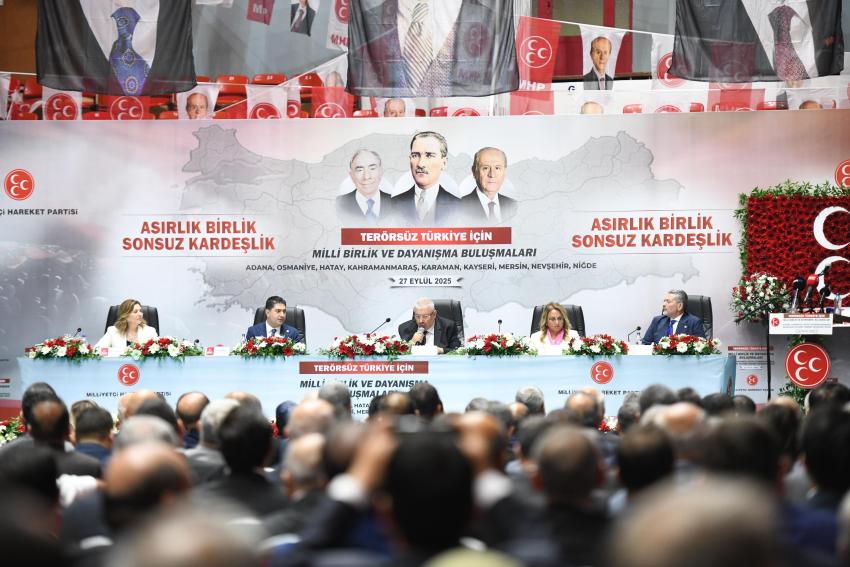 MHP Adana’nın ev sahipliğinde 9 il teşkilatının katılımıyla düzenlenen “Terörsüz Türkiye İçin Millî Birlik ve Dayanışma Buluşmaları” muhteşem bir coşkuya, heyecana ve dayanışmaya sahne oldu. | ||