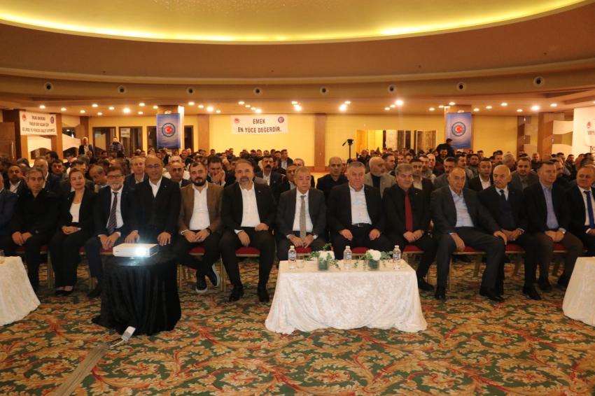 TÜRK-İŞ’e bağlı TES-İŞ Sendikası Adana Şube Başkanlığının 13.’ncü Olağan Genel Kurulu gerçekleştirildi. Mevcut Şube Başkanı Mehmet Çetin’in yeniden aday olduğu Genel Kurula tek liste halinde gidildi. 179 delegenin oy kullandığı Genel Kurulda 174 Delegenin oyunu alan TES-İŞ Sendikası Adana Şube Başkanı Mehmet Çetin, güven tazeleyerek yeniden Başkan seçildi. Adana Anemon Grand otelde gerçekleşen Genel Kurula TÜRK-İŞ Genel Başkan Yardımcısı ve TES-İŞ Sendikası Genel Başkanı İrfan Kabaloğlu ile Genel Başkan Yardımcıları, TÜRK-İŞ 4. Bölge Başkanı Edip Gülnar, TES-İŞ Sendikasına bağlı birçok ilden gelen Şube Başkanları, yöneticileri, TÜRK-İŞ’e bağlı Sendikaların Adana Şube Başkanları ile TES-İŞ’in örgütlü olduğu kurumlardan üst düzey yöneticiler katıldı. Saygı Duruşu ve İstiklal marşının okunmasıyla başlayan Genel Kurulun açılış konuşmasını yapan TES-İŞ Sendikası Adana Şube Başkanı Mehmet Çetin, sendikal hak ve mücadelenin her geçen gün zorlaştığı günümüz Türkiye’sinde, çalışan emekçi kesimin haklarının korunması, iş barışının sağlanması, çalışanların refah seviyelerinin artırılması, sendikal örgütlenmenin artması hususunda özveriyle çalıştıklarını söyledi. Başkan Çetin, yeni dönemde de aynı özveriyi Yönetim Kurulu üyeleriyle sağlamak için var güçleriyle çalışacaklarını ifade etti. Divan Başkanlığını TÜRK-İŞ Genel Başkan Yardımcısı ve TES-İŞ Sendikası Genel Başkanı İrfan Kabaloğlu yaptı. Kabaloğlu, Genel kurulda yaptığı konuşmada önemli mesajlar verdi. “TÜRK-İŞ TÜRKİYE’NİN İNCİSİDİR” Genel Kurula katılanların alkışları eşliğinde konuşmasına başlayan İrfan Kabaloğlu, Türkiye’nin içinde bulunduğu ekonomik istikrarsızlığın her geçen gün kötüye gittiğini belirterek “2026 yılından itibaren geçerli olacak asgari ücret nasıl belirlendiği ortada, TÜRK-İŞ’in aldığı kararda ortada. Bizim neden masada olmadığımızı eleştiriyorlar, kadrolu iftiracılar var, kampanya düzenliyorlar bizim için, bizde komisyon üye dağılımının adil olmadığını söylüyoruz. TÜRK-İŞ’in vatanına, milletine, bayrağına verdiği değer ortadadır. Bunun sorgulanmasına asla izin vermeyiz. TÜRK-İŞ Türkiye’nin incisidir. TÜRK-İŞ’in duruşu ortadadır, ülkemizin tüm kesimlerinin sesine kulak veriyoruz. Bizi eylem yapmıyor diye eleştirenler şunu iyi bilmeli TÜRK-İŞ emekçinin, işçinin menfaatine dokunulması halinde eylem yapar. TÜRK-İŞ ayağa kalktığı zaman kimse yerinde oturamaz” diye konuştu. Genel Kurulda ayrıca TÜRK-İŞ 4. Bölge Başkanı Edip Gülnar ile TES-İŞ Sendikası eski Genel Başkanlarından Mustafa Şahin’de birer konuşma gerçekleştirdi. Konuşmaların ardından seçime geçildi, 179 oyun kullandığı Genel Kurulda oyların 174’ünü alan mevcut Şube Başkanı Mehmet Çetin yeniden TES-İŞ Sendikası Adana Şube Başkanlığına yeniden seçildi. |
