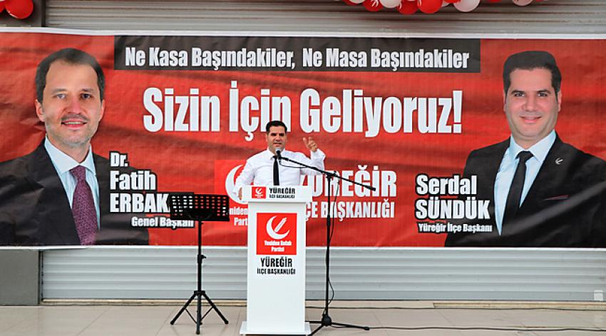 Yeniden Refah Partisi Yüreğir İlçe Başkanı Serdal Sündük vatandaşların yoğun sevgi gösterileri arasında selamlama konuşması için kürsüye çıktı. Bu sırada alanda bulunanlar sık sık; Türkiye'nin Fatih'i Yüreğir'in Serdar'ı sloganları attı.