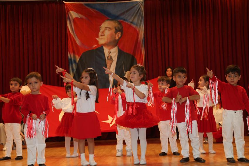 Yüreğir Belediyesi bünyesindeki kreşlerin düzenlediği ve Atatürk Kültür Merkezi’nde gerçekleştirilen özel kutlama programında ise minikler ellerinde Türk bayraklarıyla Cumhuriyet’in anlamını ve önemini öğrendi. Renkli gösteriler sunan küçük yürekler büyük bir gururu paylaştı.