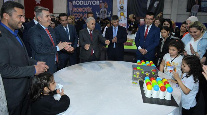 Vali Elban’ın öncülüğünde başlatılan “İmamoğlu Kodluyor” projesi kapsamında verilen eğitimler sonucunda ilçede bu yıl ilk kez düzenlenen şenlikte; 80 robotik, 30 blok tabanlı ve 20 bilgisayarsız olmak üzere toplamda 150 proje sergilendi.